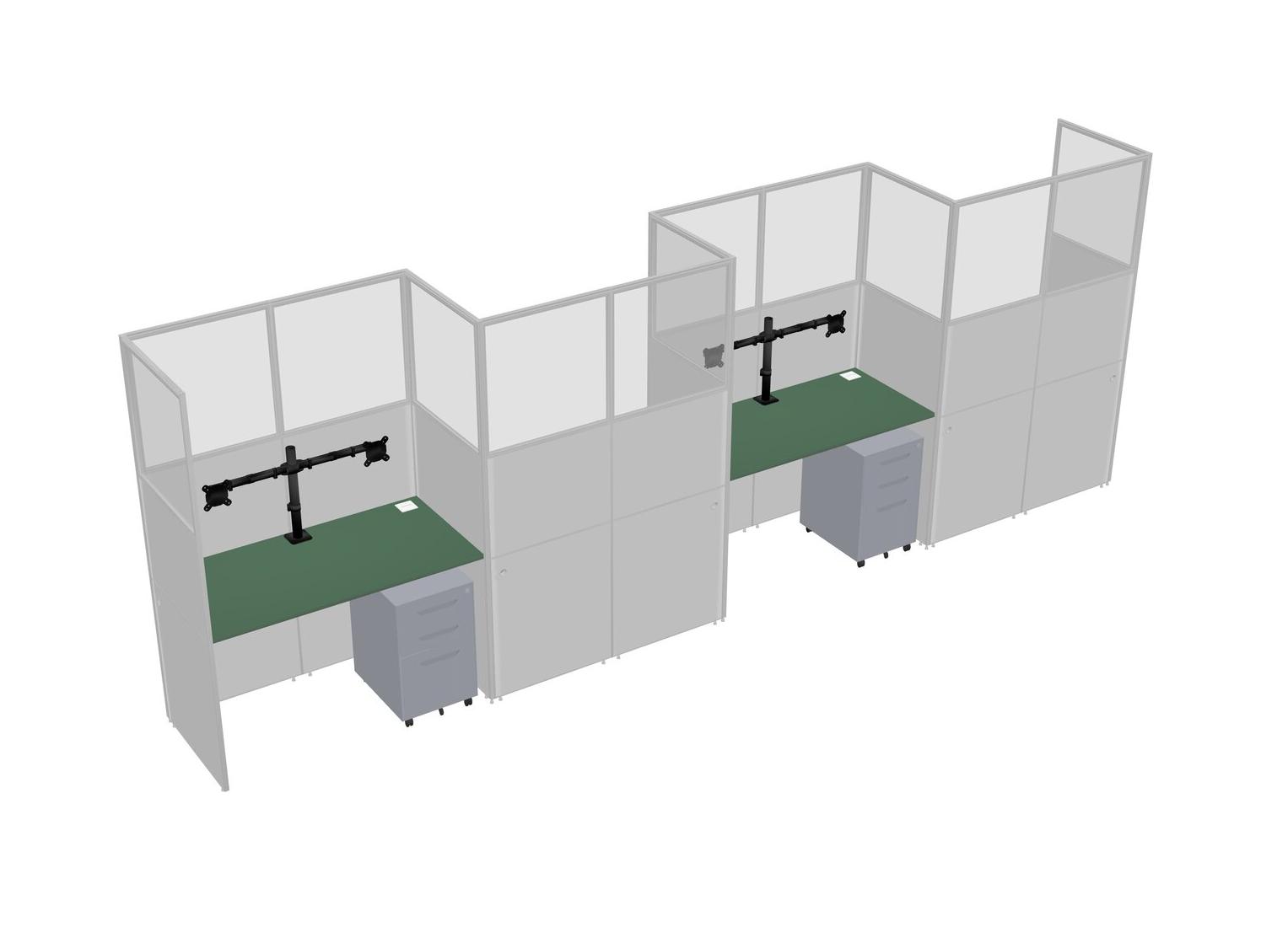 Green Rectangular Cubicle Workstations For 4 - Zigzag Formation + Grey Metal Mobile Drawers