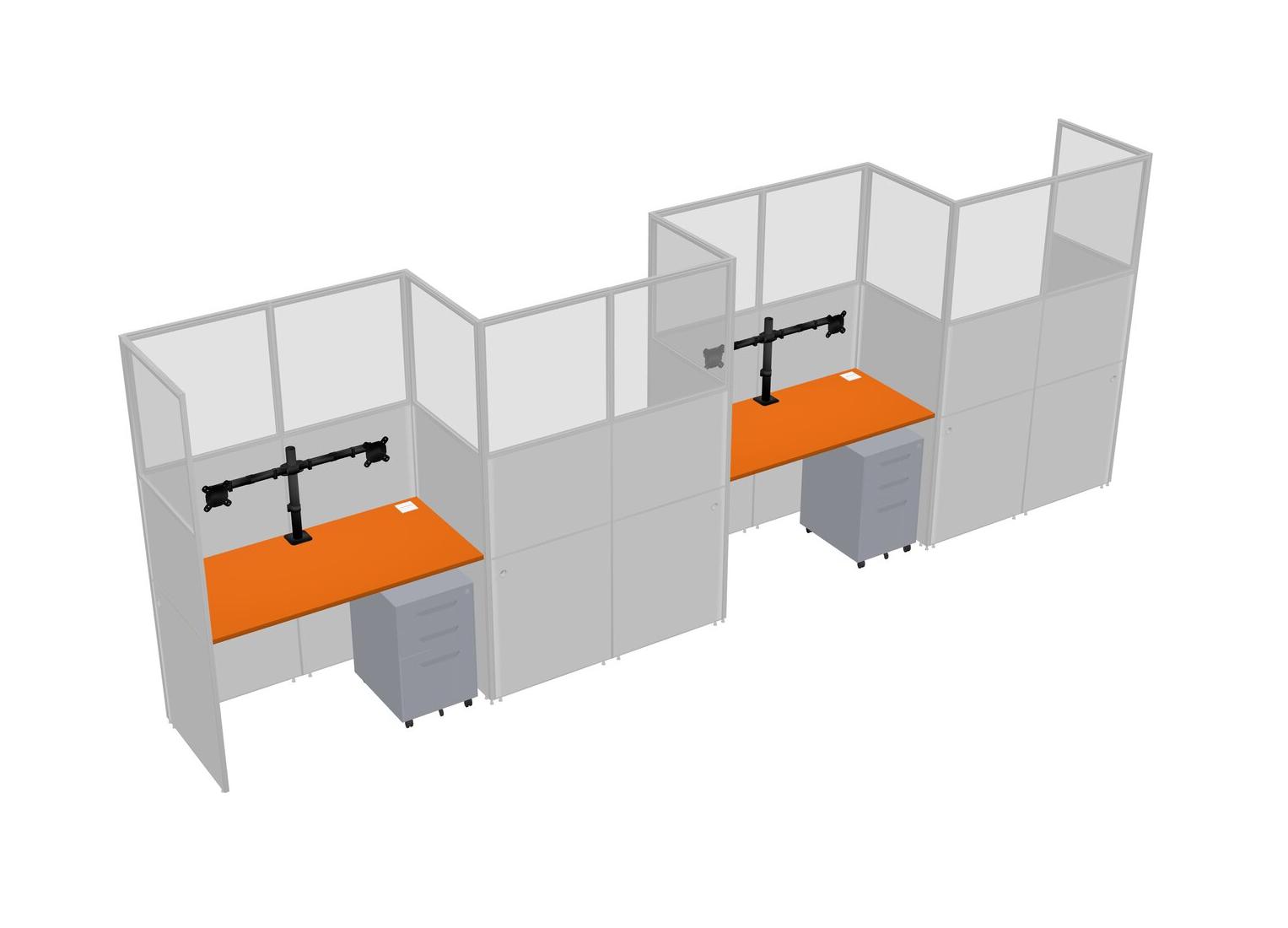 Orange Rectangular Cubicle Workstations For 4 - Zigzag Formation + Grey Metal Mobile Drawers