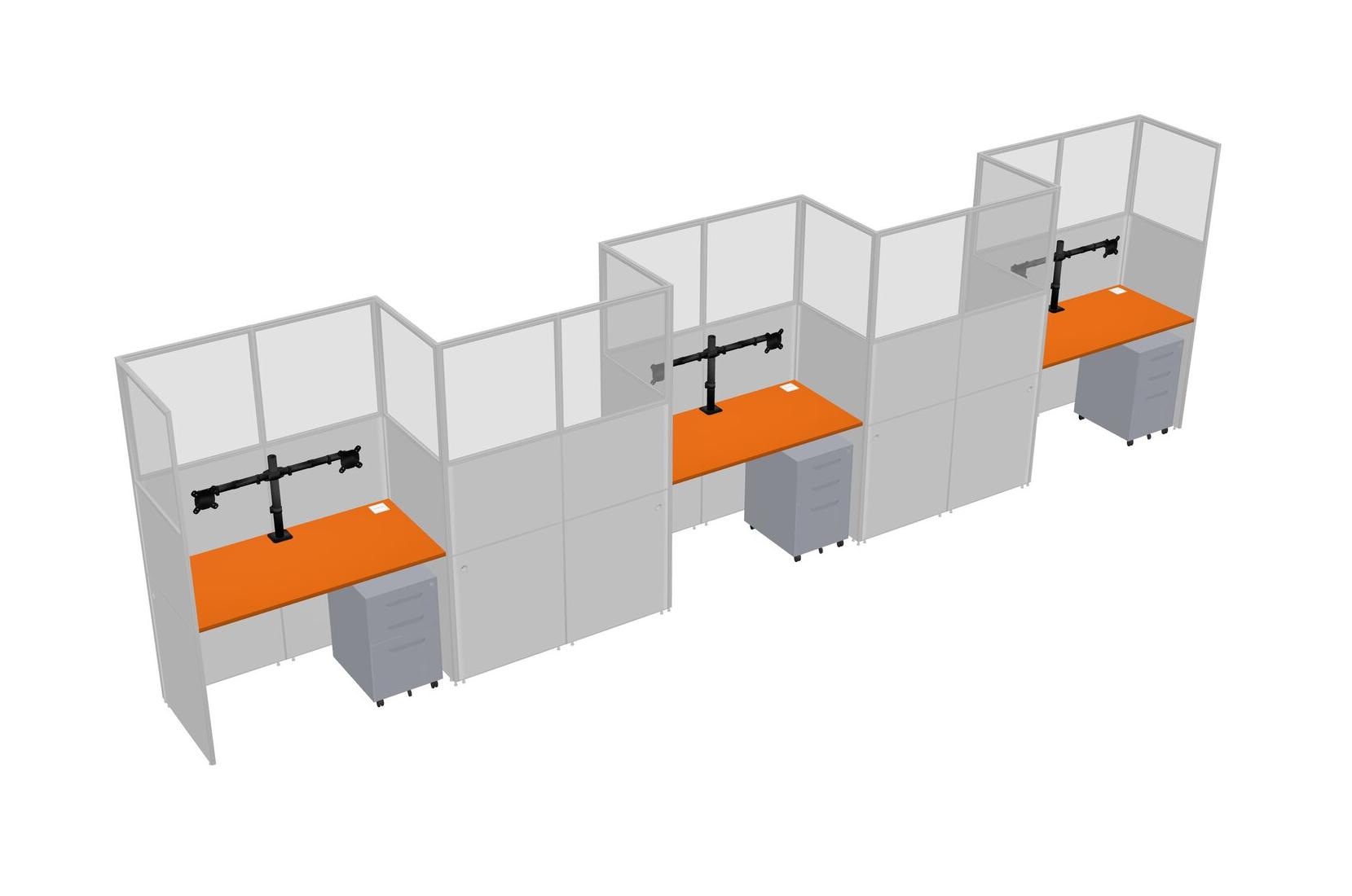 Orange Rectangular Cubicle Workstations For 5 - Zigzag Formation + Grey Metal Mobile Drawers