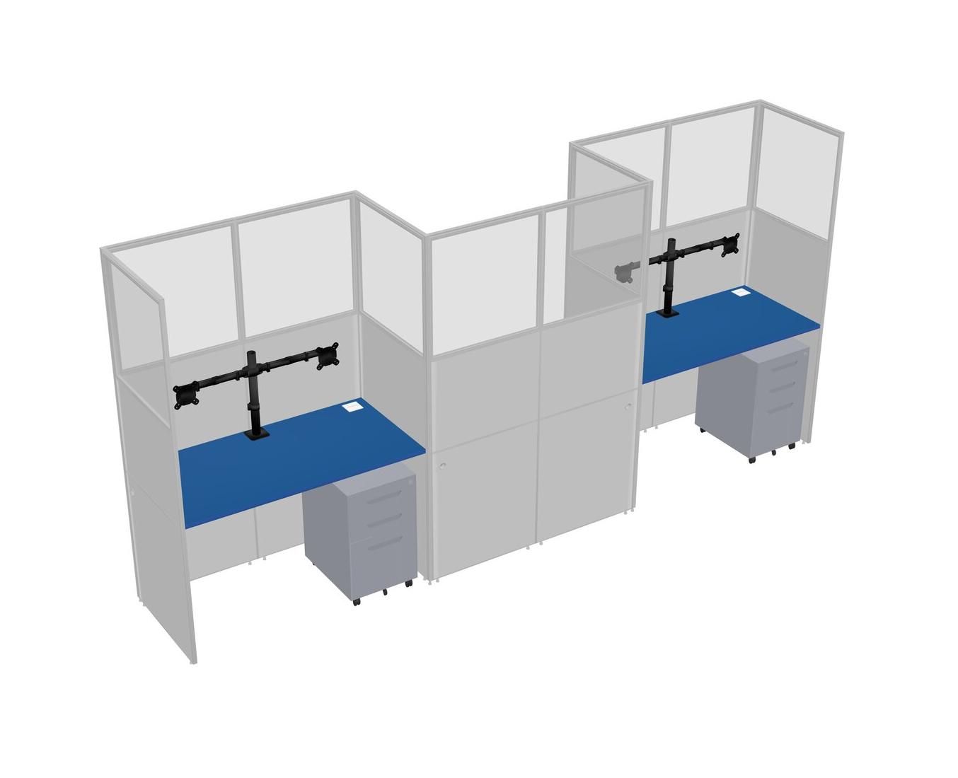 Prism Blue Rectangular Cubicle Workstations For 3 - Zigzag Formation + Grey Metal Mobile Drawers