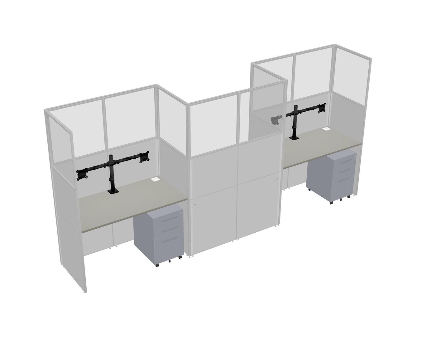 Grey Shadows Rectangular Cubicle Workstations For 3 - Zigzag Formation + Grey Metal Mobile Drawers