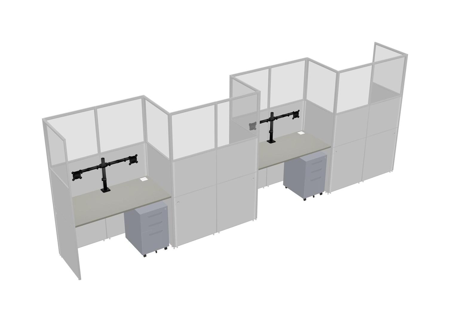 Grey Shadows Rectangular Cubicle Workstations For 4 - Zigzag Formation + Grey Metal Mobile Drawers