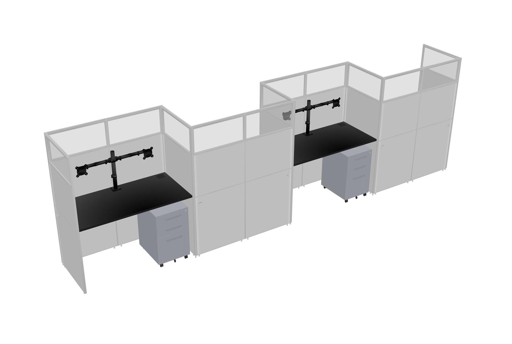 Black Rectangular Cubicle Workstations For 4 - Zigzag Formation + Grey Metal Mobile Drawers
