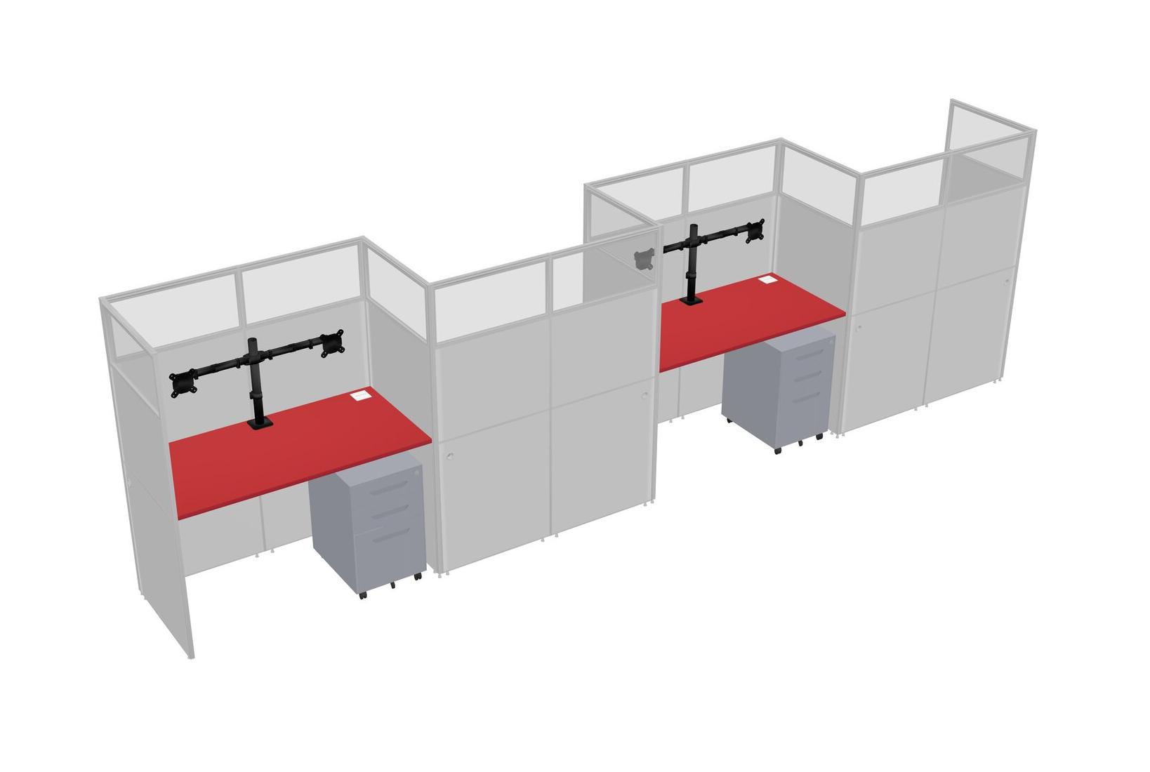 Prism Red Rectangular Cubicle Workstations For 4 - Zigzag Formation + Grey Metal Mobile Drawers