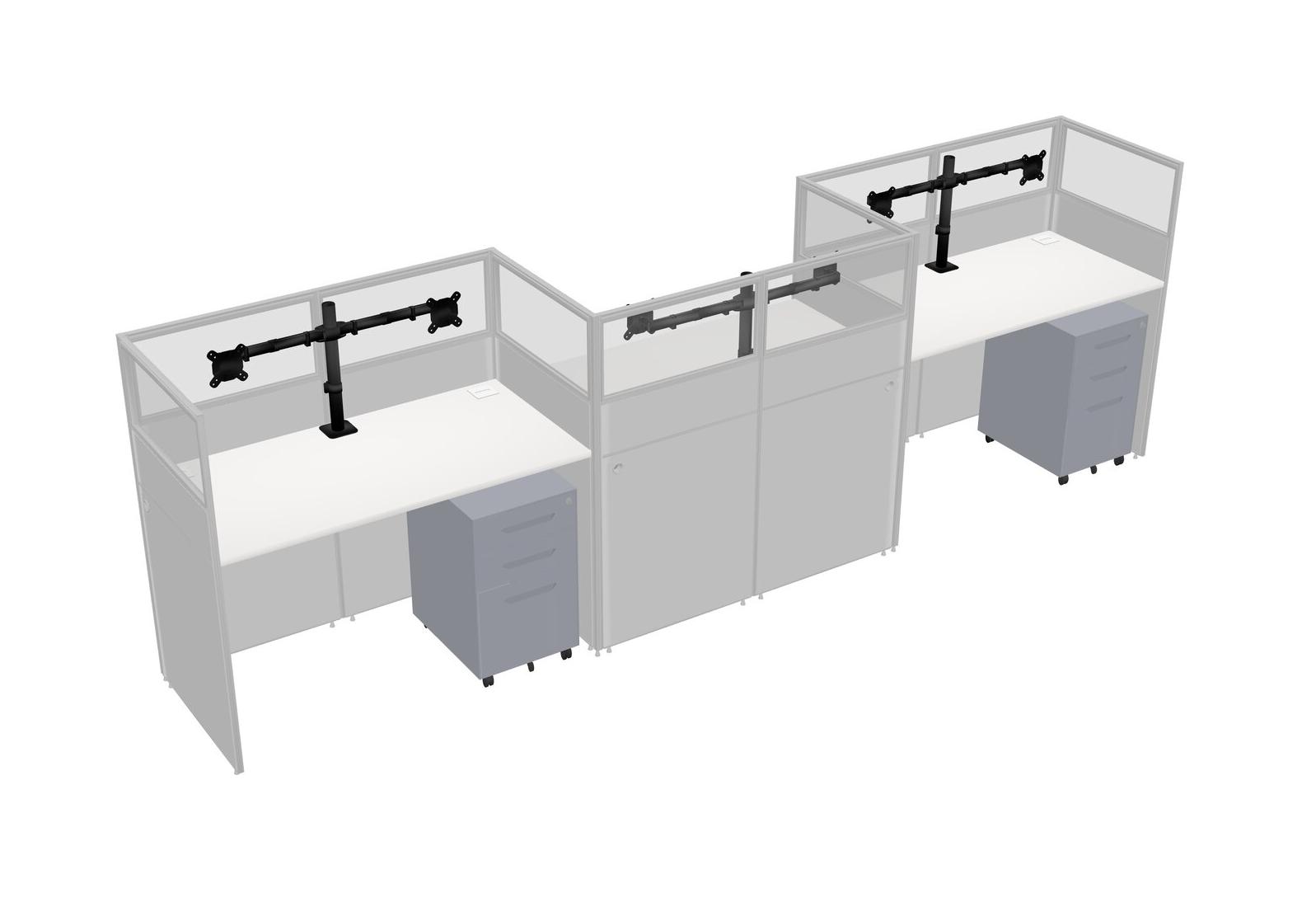 White Rectangular Cubicle Workstations For 3 - Zigzag Formation + Grey Metal Mobile Drawers