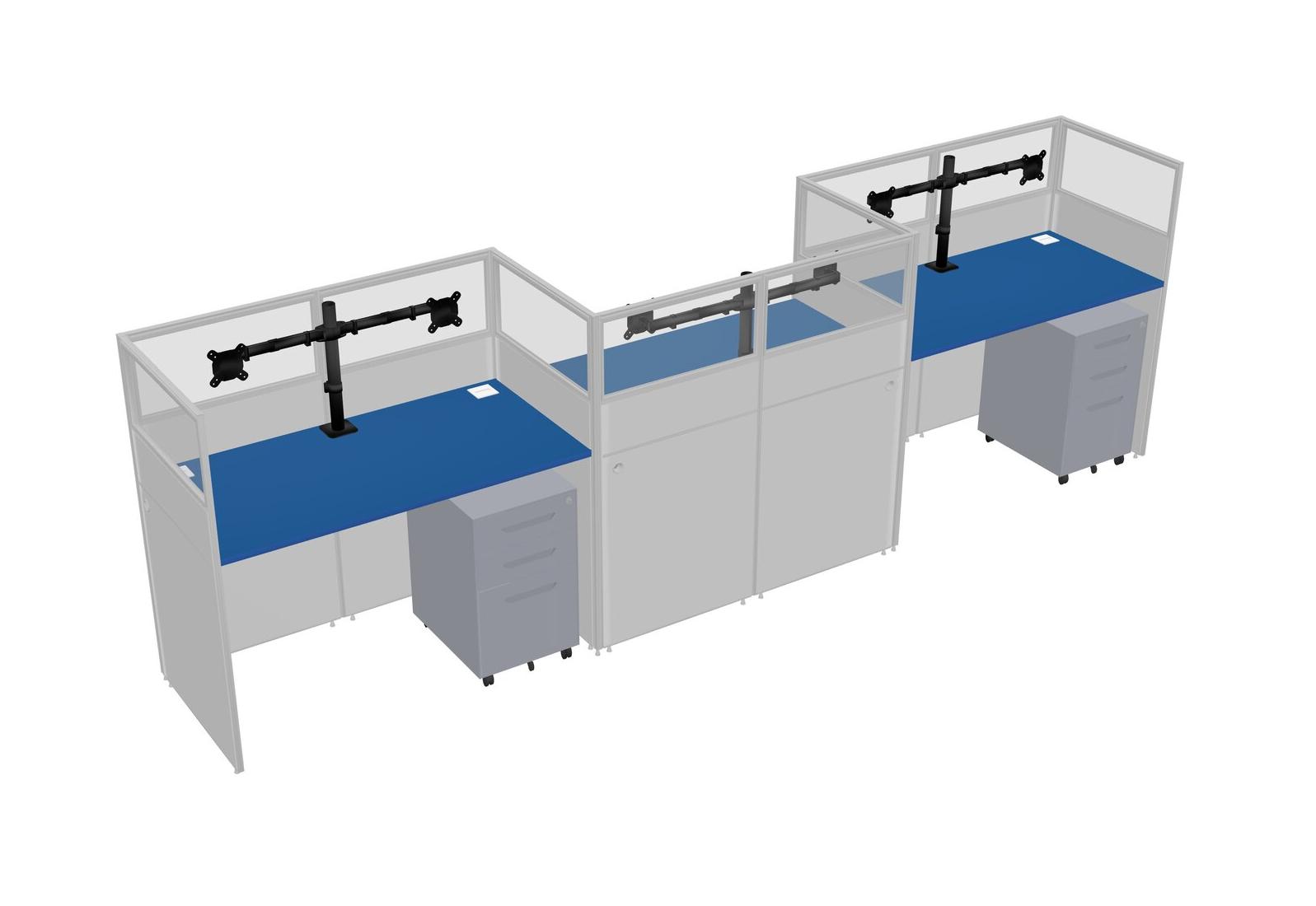 Prism Blue Rectangular Cubicle Workstations For 3 - Zigzag Formation + Grey Metal Mobile Drawers