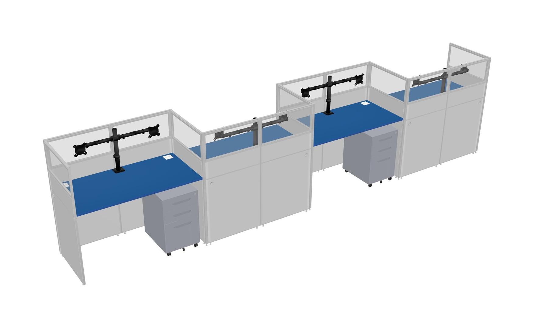 Prism Blue Rectangular Cubicle Workstations For 4 - Zigzag Formation + Grey Metal Mobile Drawers