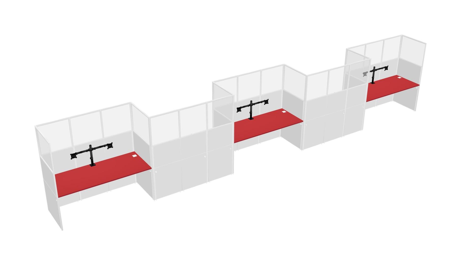 Prism Red Rectangular Cubicle Workstations For 5 - Zigzag Formation