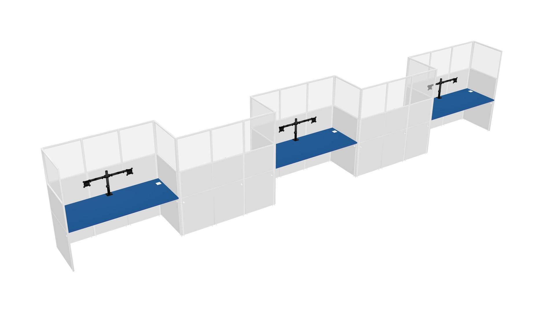Prism Blue Rectangular Cubicle Workstations For 5 - Zigzag Formation