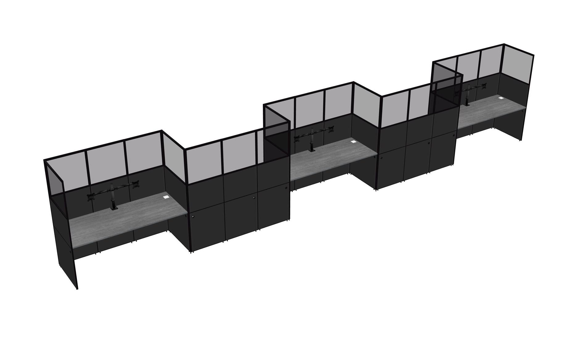 Grey Rectangular Cubicle Workstations For 5 - Zigzag Formation