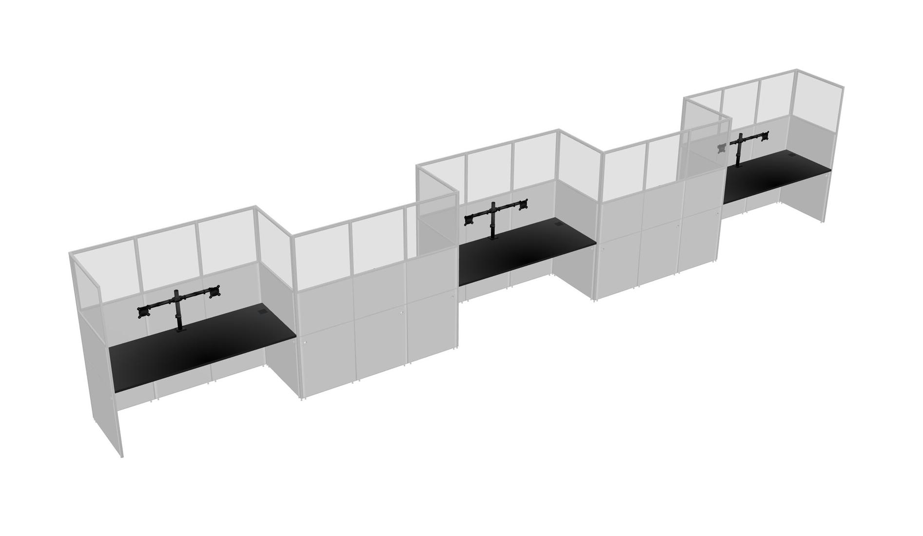 Black Rectangular Cubicle Workstations For 5 - Zigzag Formation