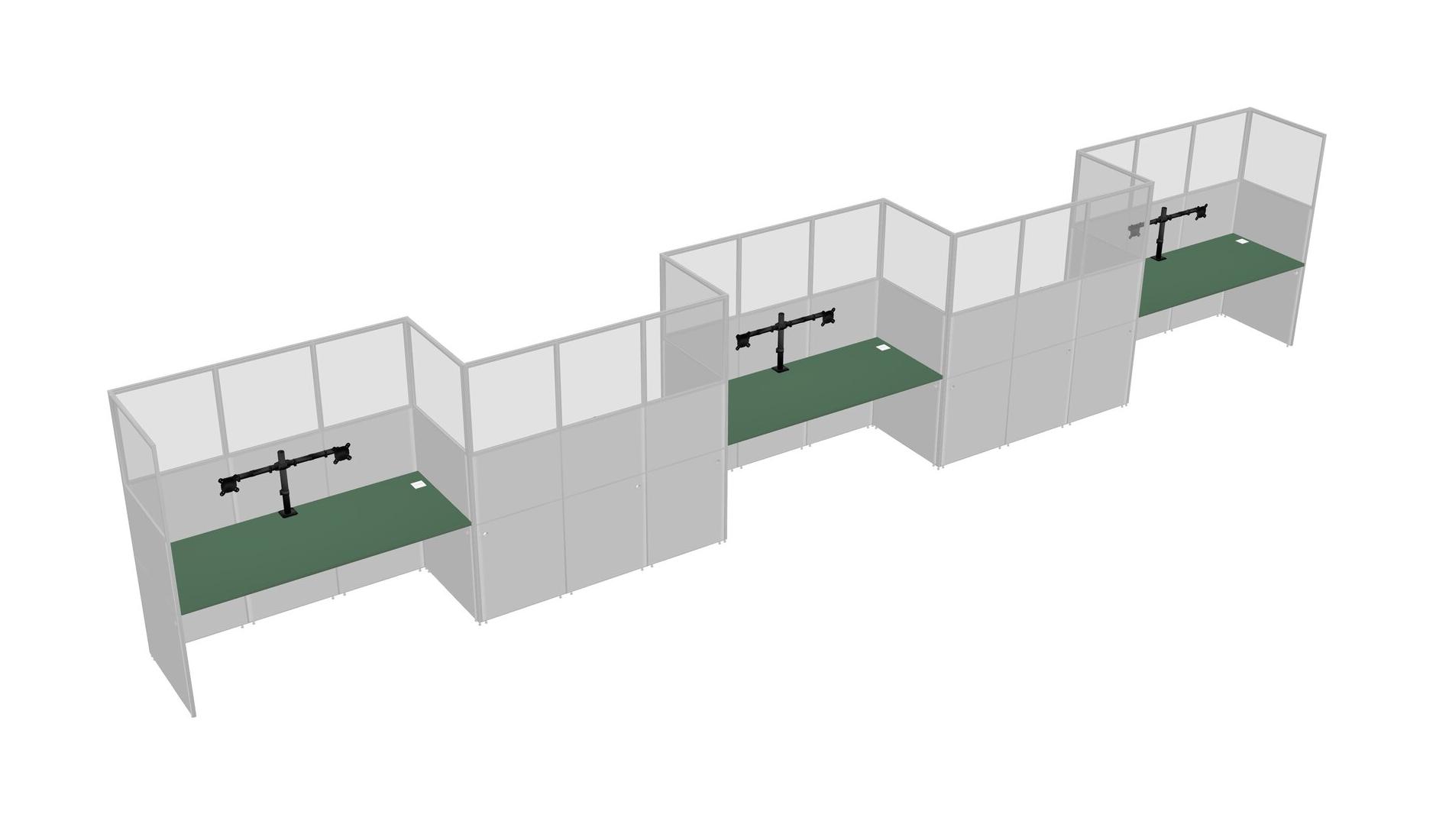Green Rectangular Cubicle Workstations For 5 - Zigzag Formation