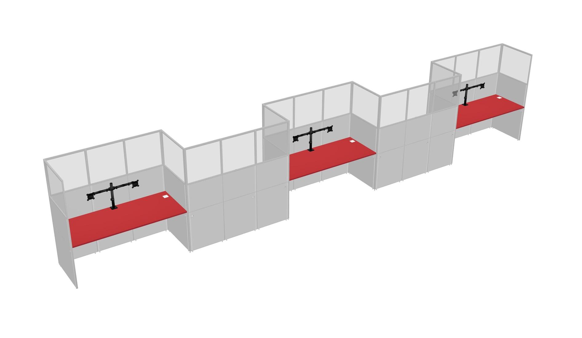 Prism Red Rectangular Cubicle Workstations For 5 - Zigzag Formation