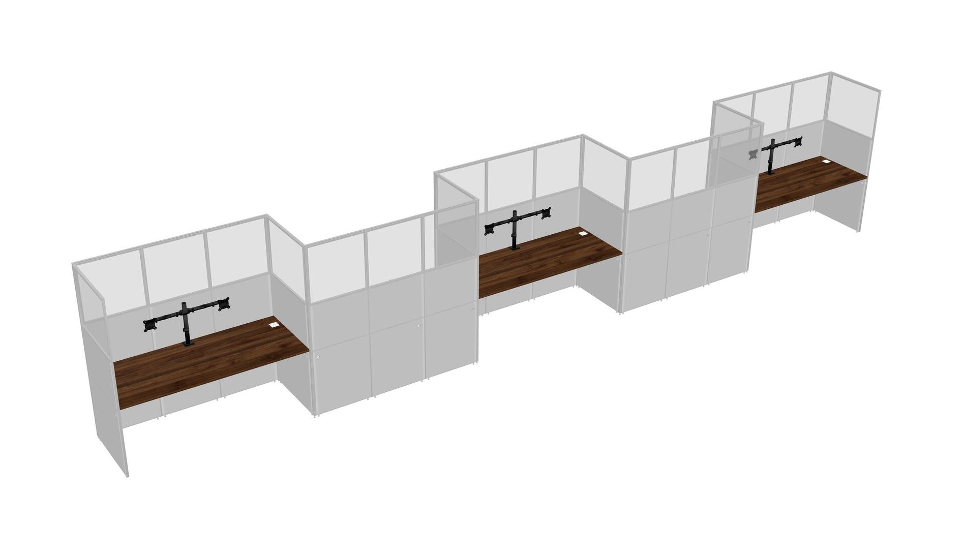 Columbia Walnut Rectangular Cubicle Workstations For 5 - Zigzag Formation