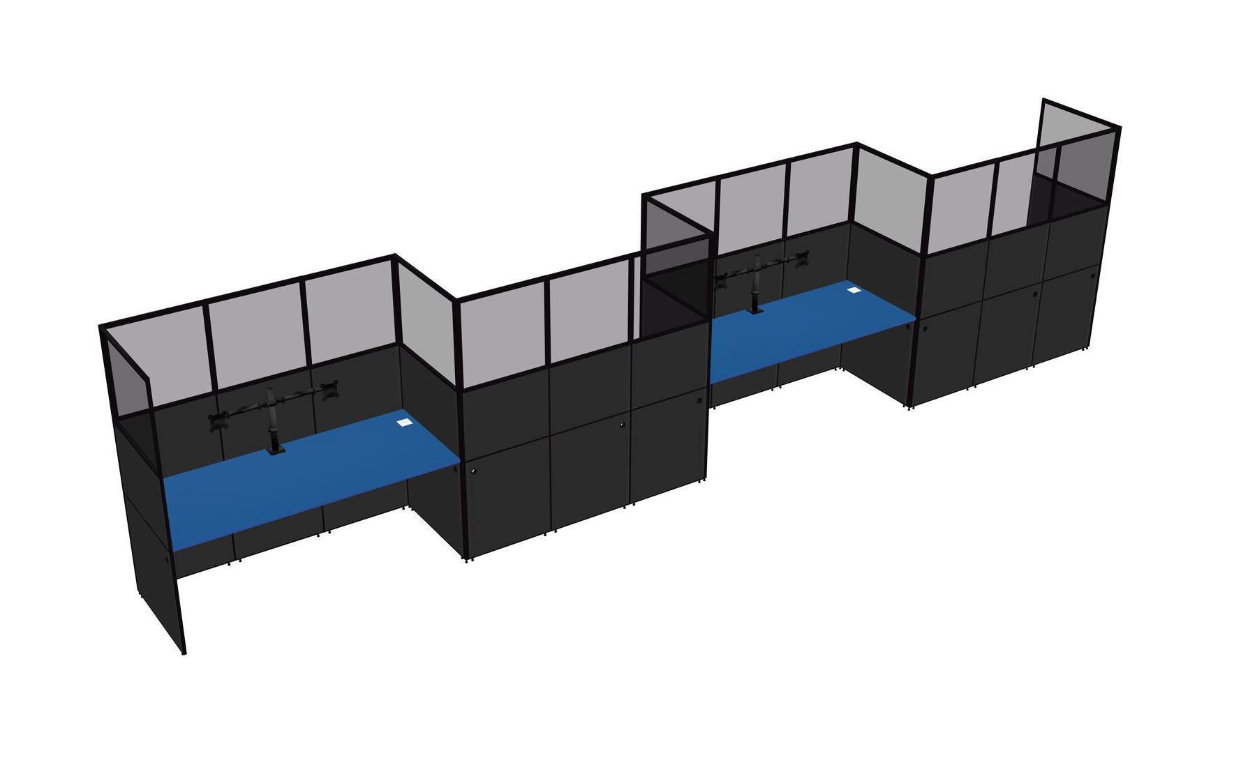Prism Blue Rectangular Cubicle Workstations For 4 - Zigzag Formation
