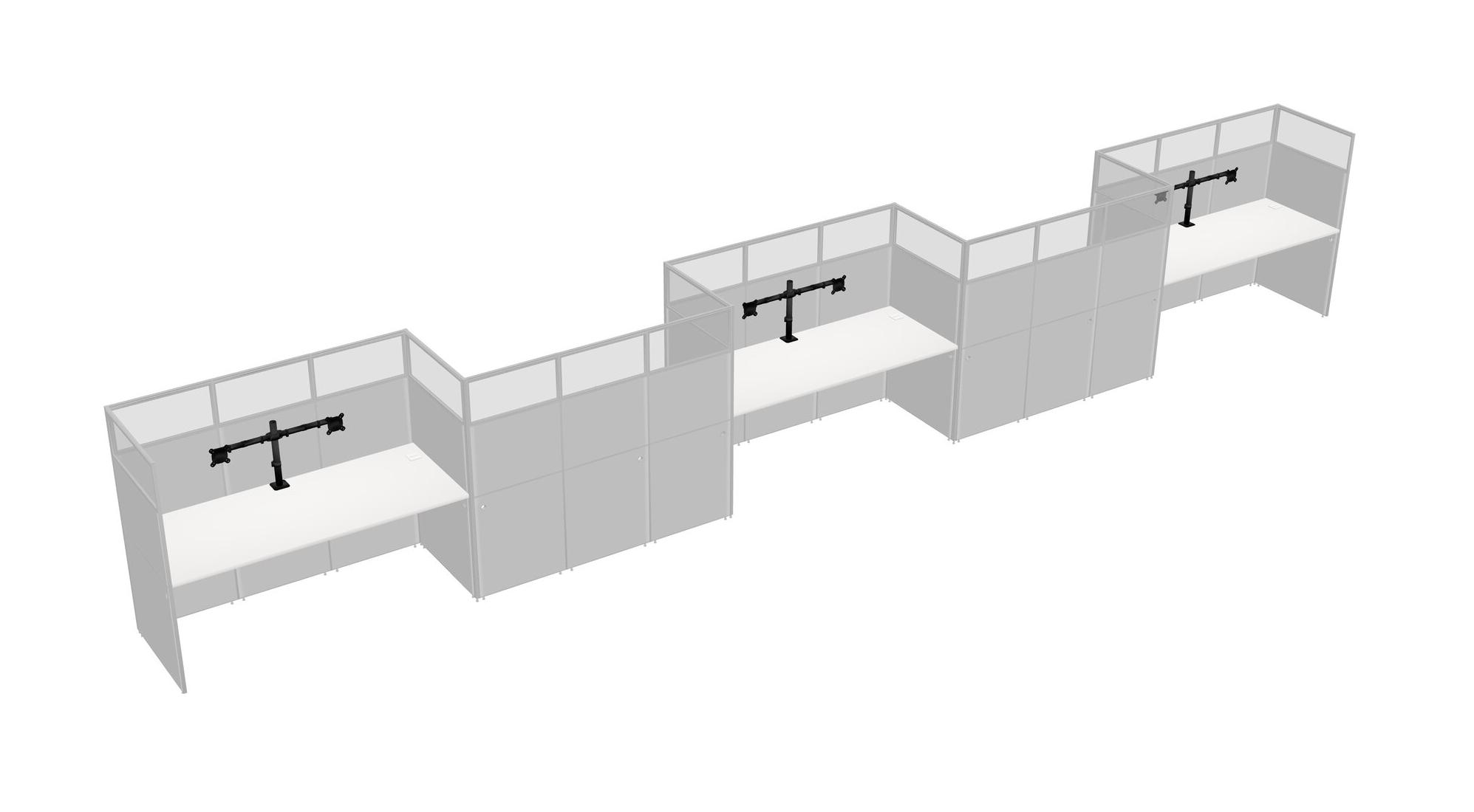 White Rectangular Cubicle Workstations For 5 - Zigzag Formation