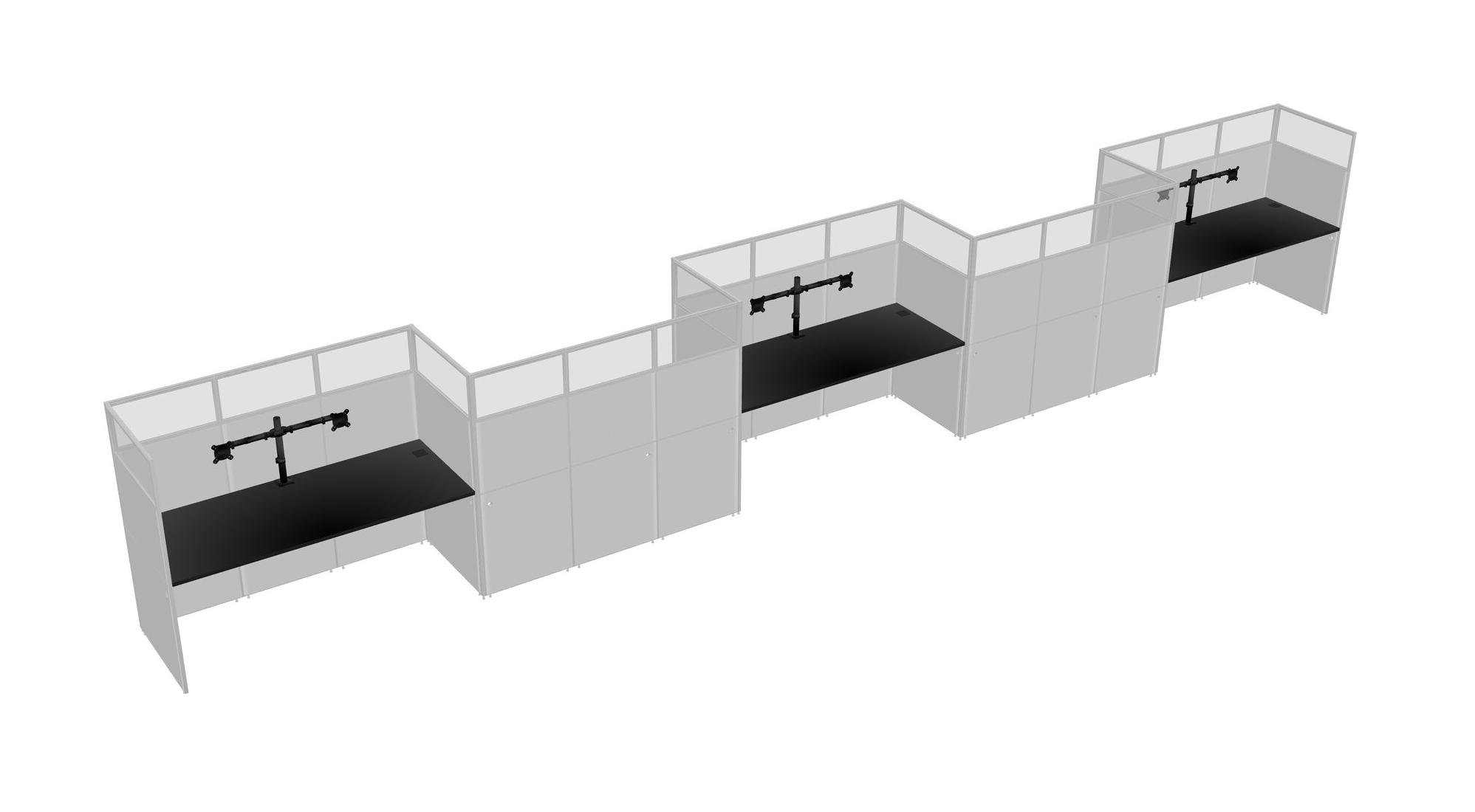 Black Rectangular Cubicle Workstations For 5 - Zigzag Formation