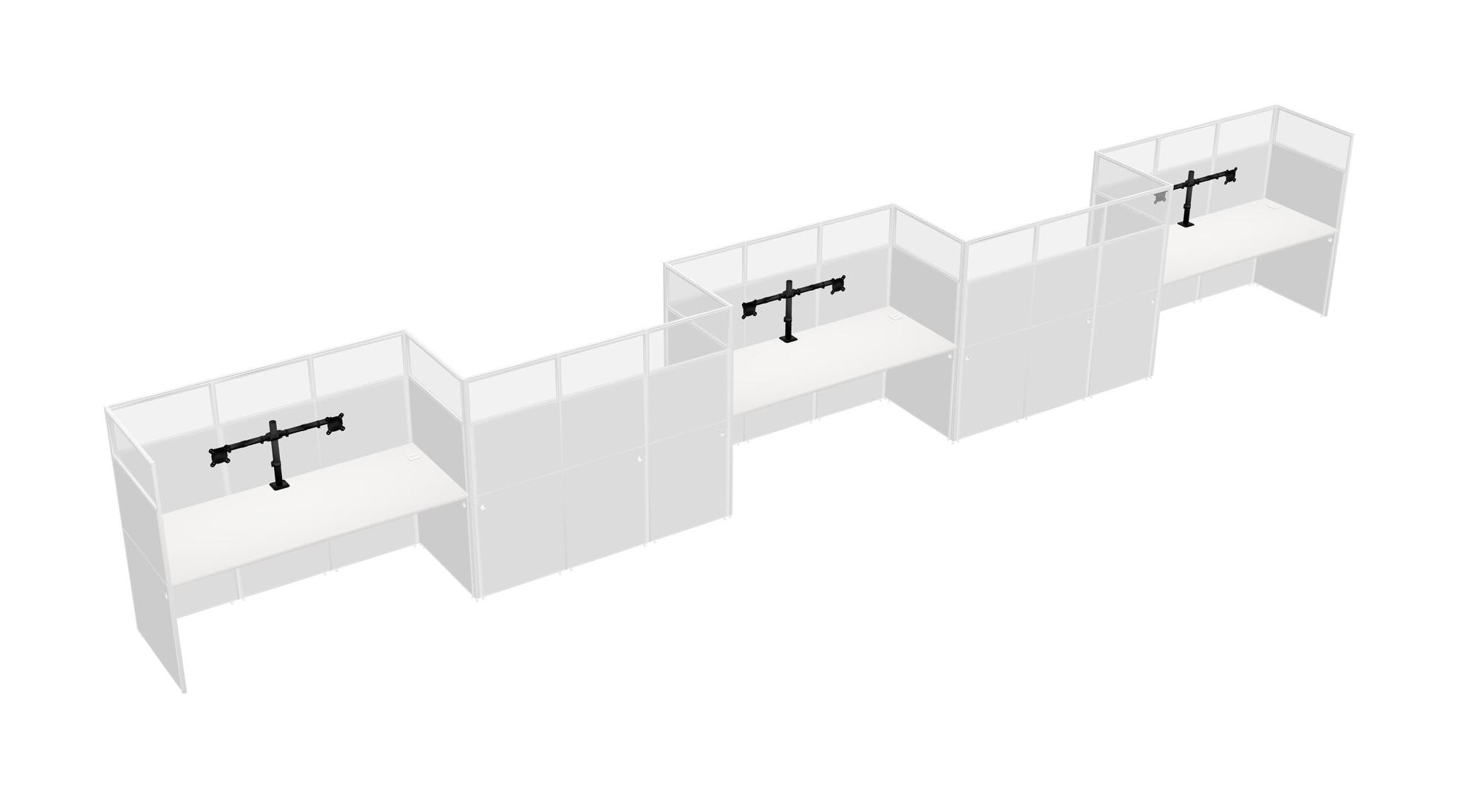 White Rectangular Cubicle Workstations For 5 - Zigzag Formation