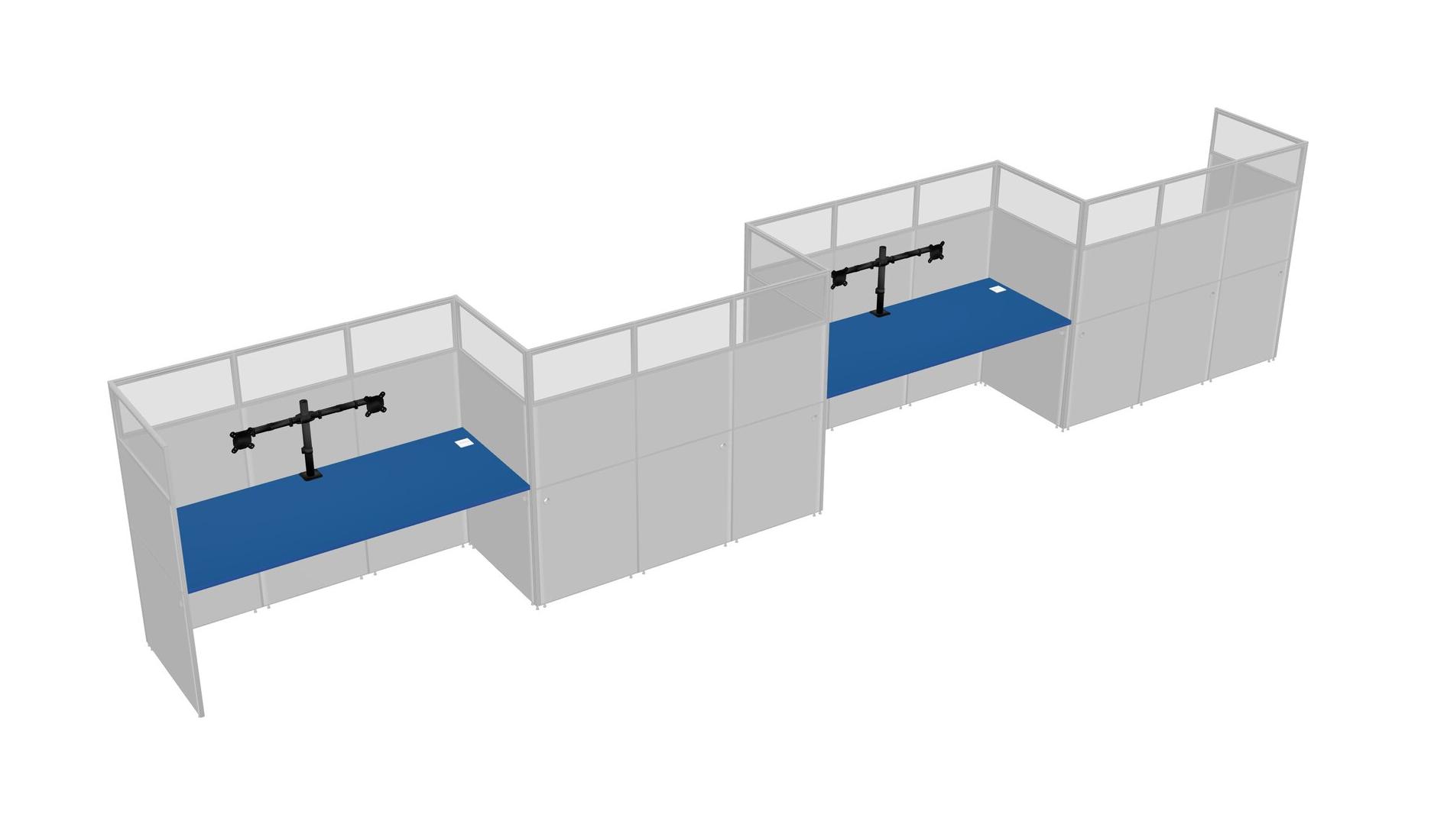 Prism Blue Rectangular Cubicle Workstations For 4 - Zigzag Formation