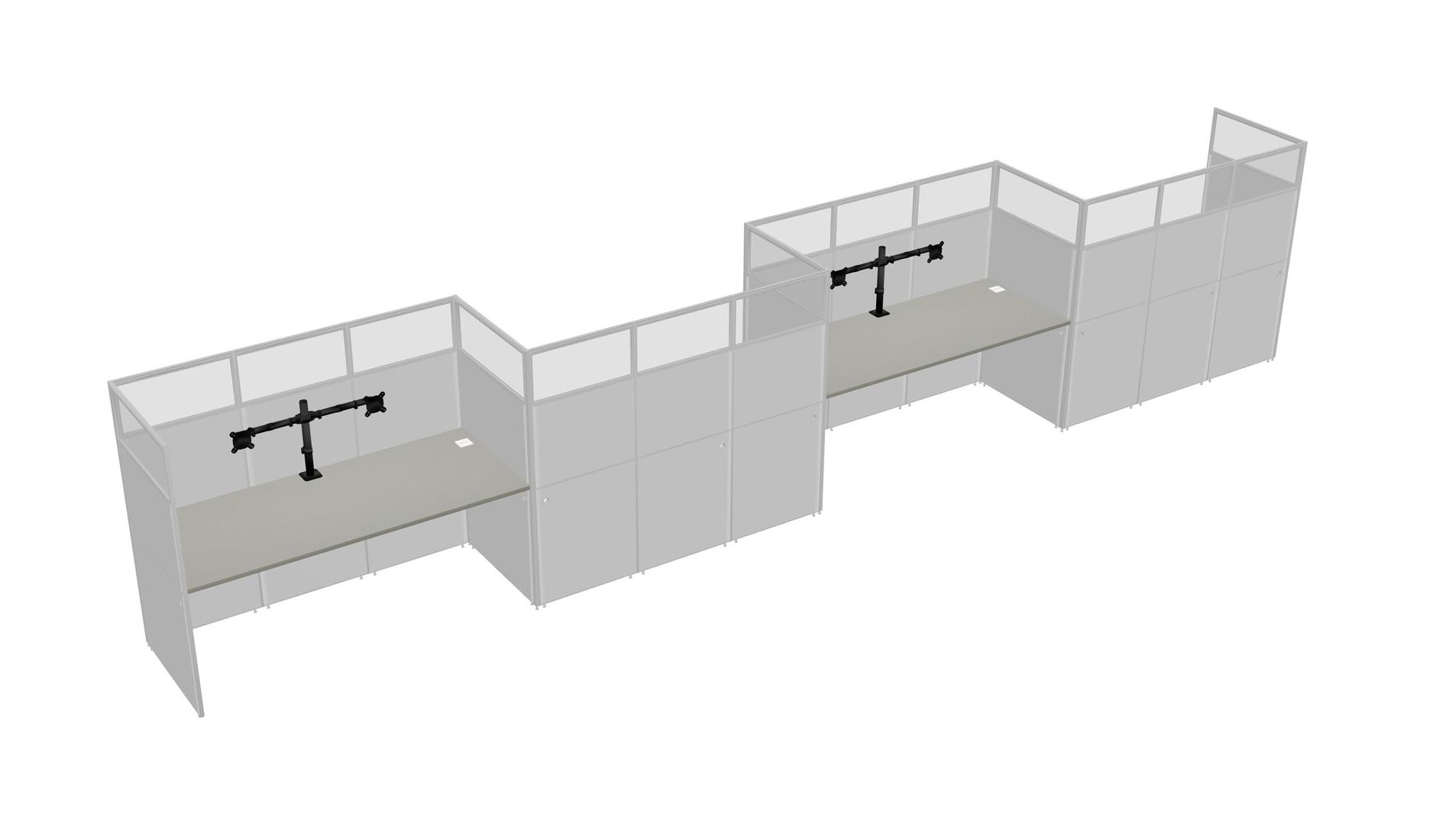 Grey Shadows Rectangular Cubicle Workstations For 4 - Zigzag Formation