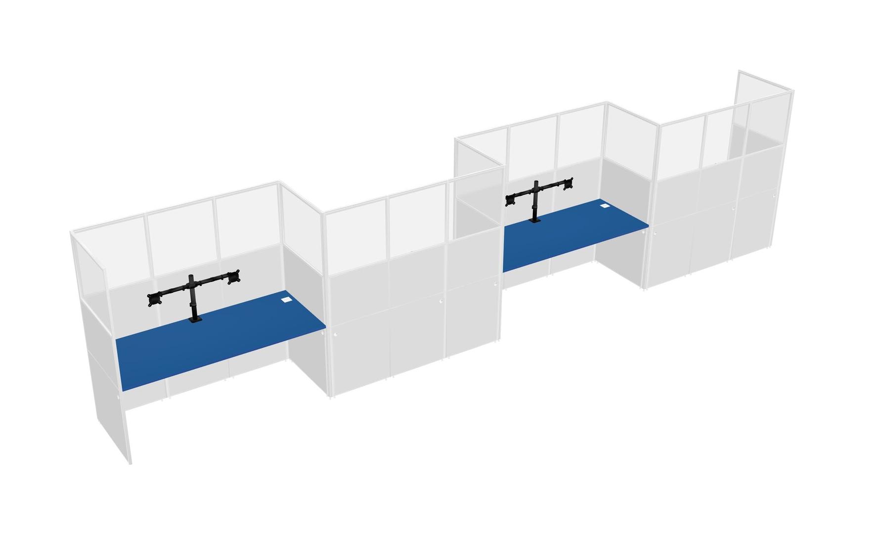 Prism Blue Rectangular Cubicle Workstations For 4 - Zigzag Formation