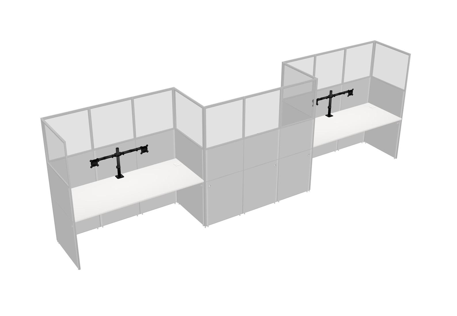 White Rectangular Cubicle Workstations For 3 - Zigzag Formation