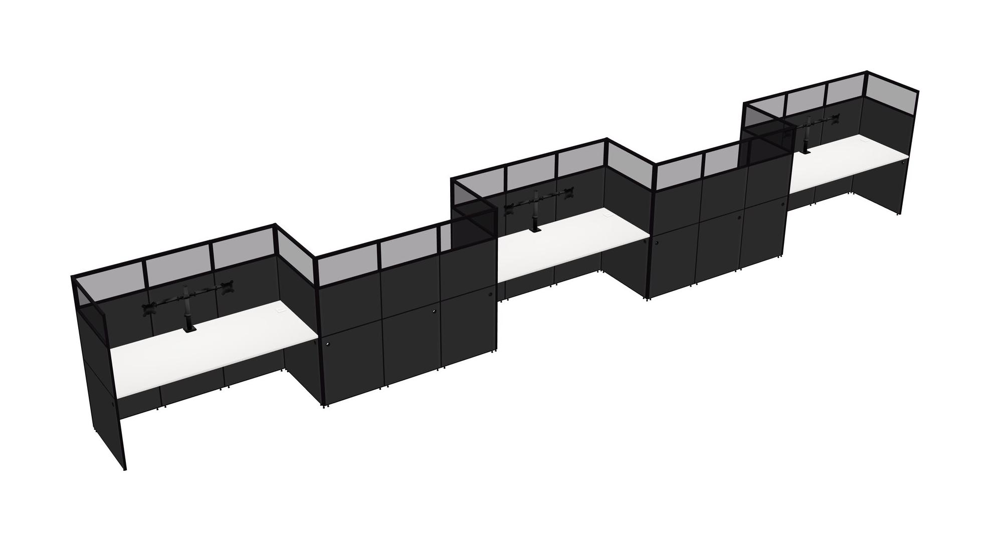 White Rectangular Cubicle Workstations For 5 - Zigzag Formation