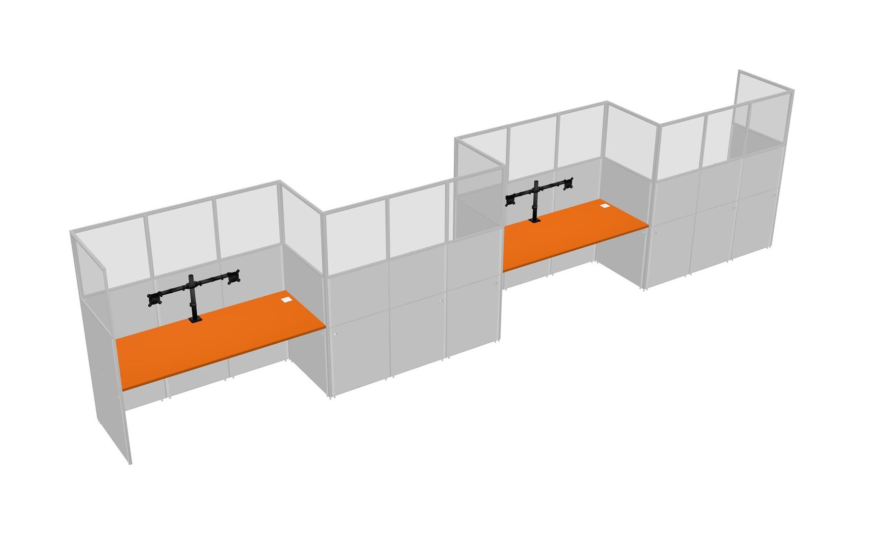 Orange Rectangular Cubicle Workstations For 4 - Zigzag Formation