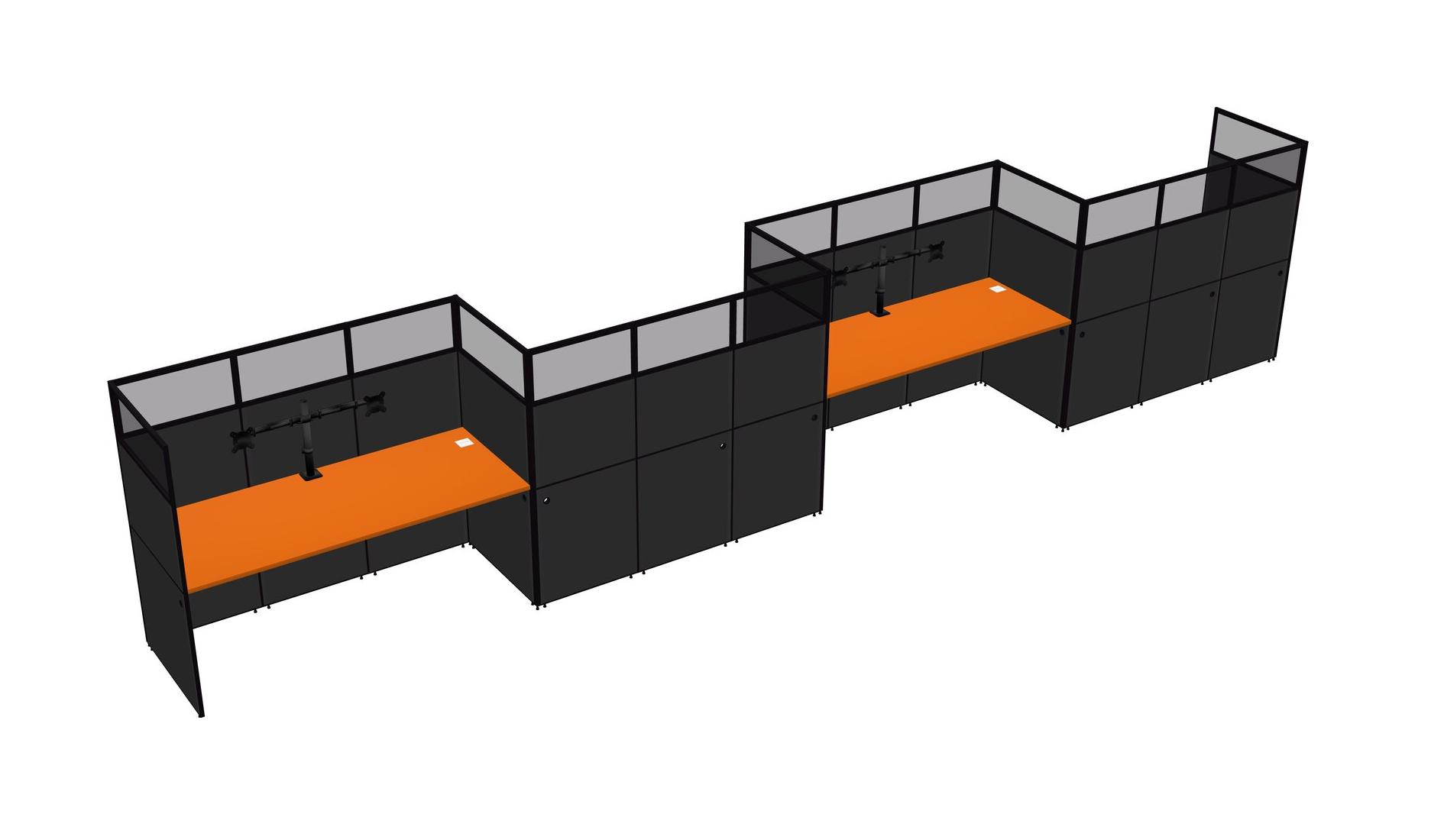 Orange Rectangular Cubicle Workstations For 4 - Zigzag Formation