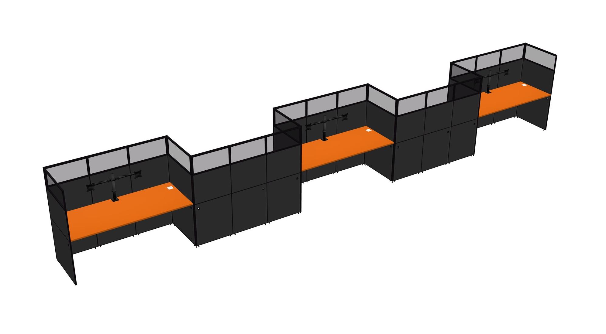 Orange Rectangular Cubicle Workstations For 5 - Zigzag Formation