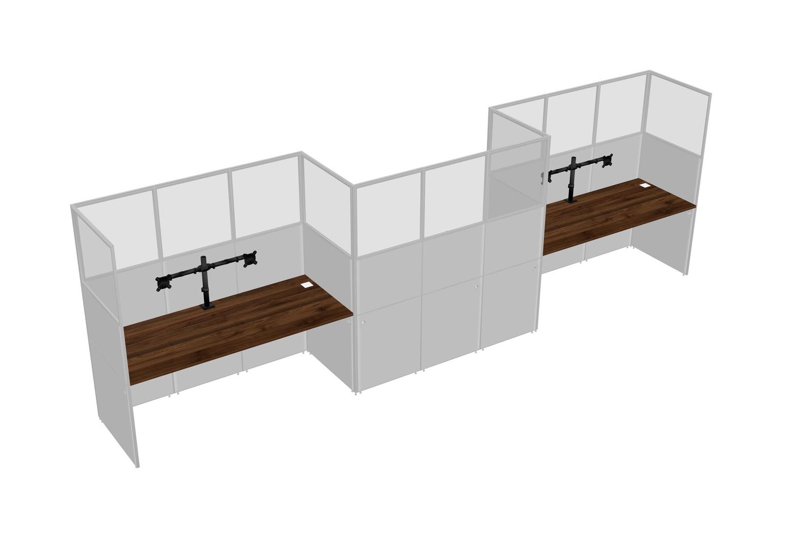 Columbia Walnut Rectangular Cubicle Workstations For 3 - Zigzag Formation