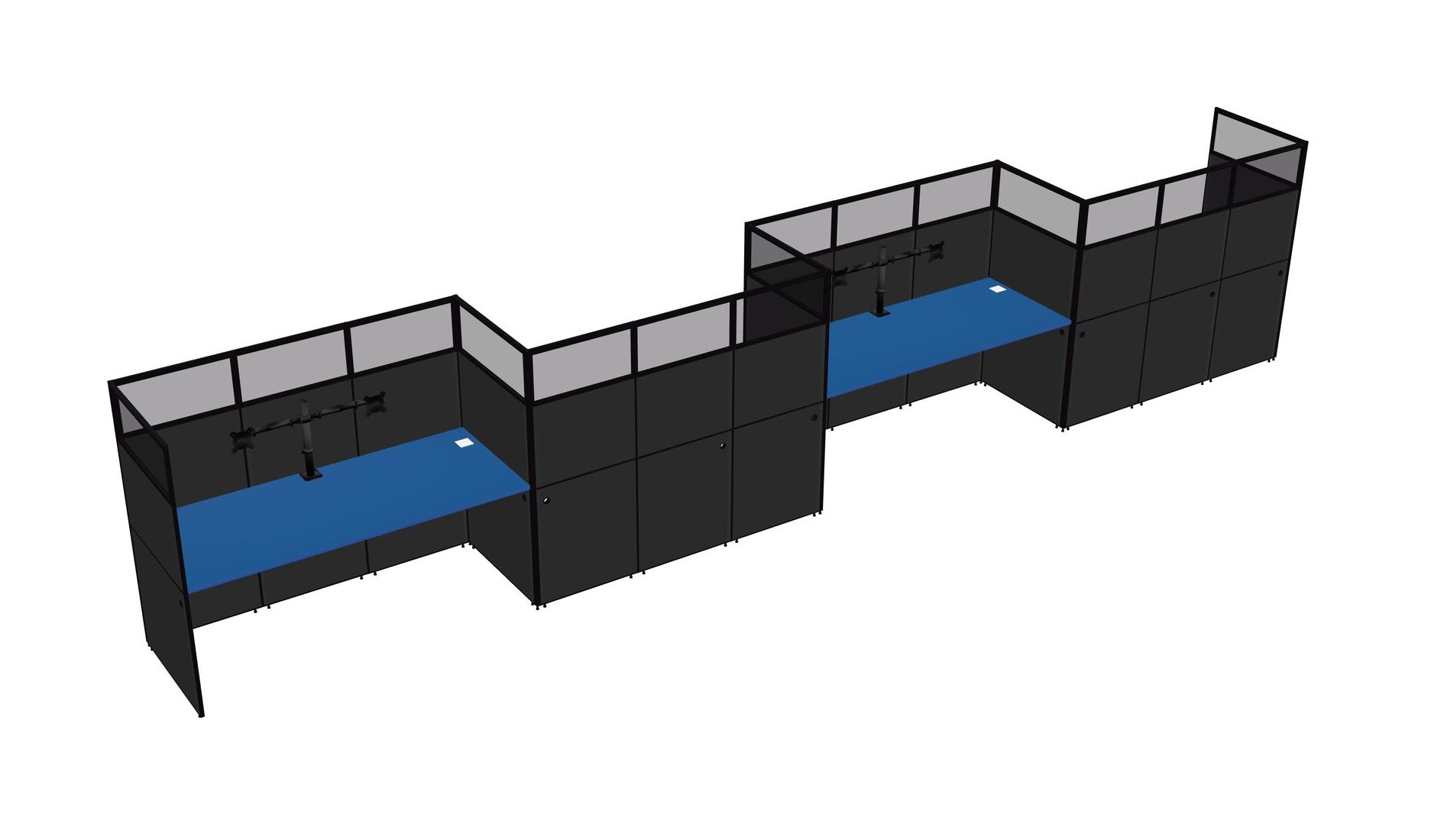 Prism Blue Rectangular Cubicle Workstations For 4 - Zigzag Formation