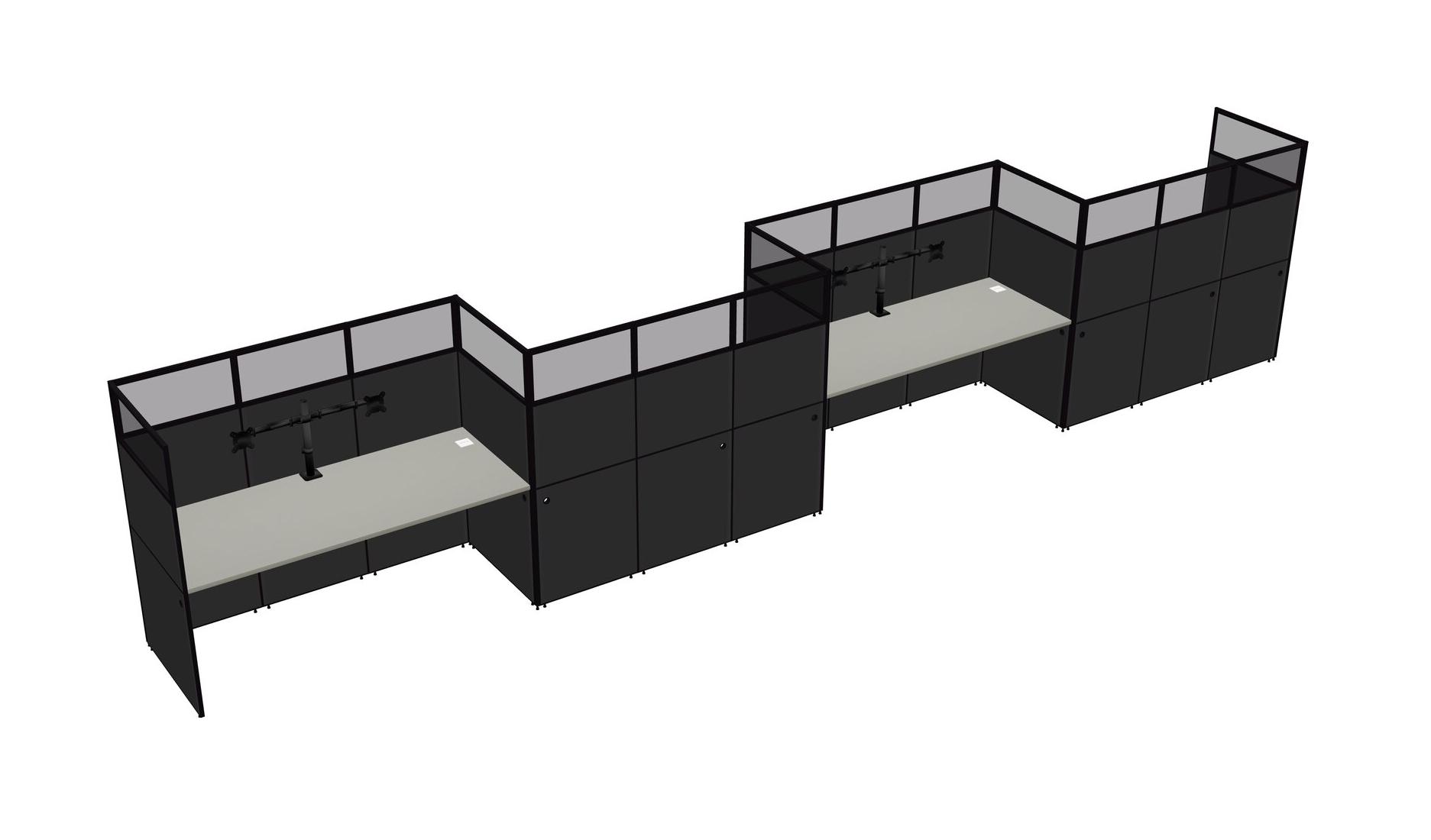 Grey Shadows Rectangular Cubicle Workstations For 4 - Zigzag Formation