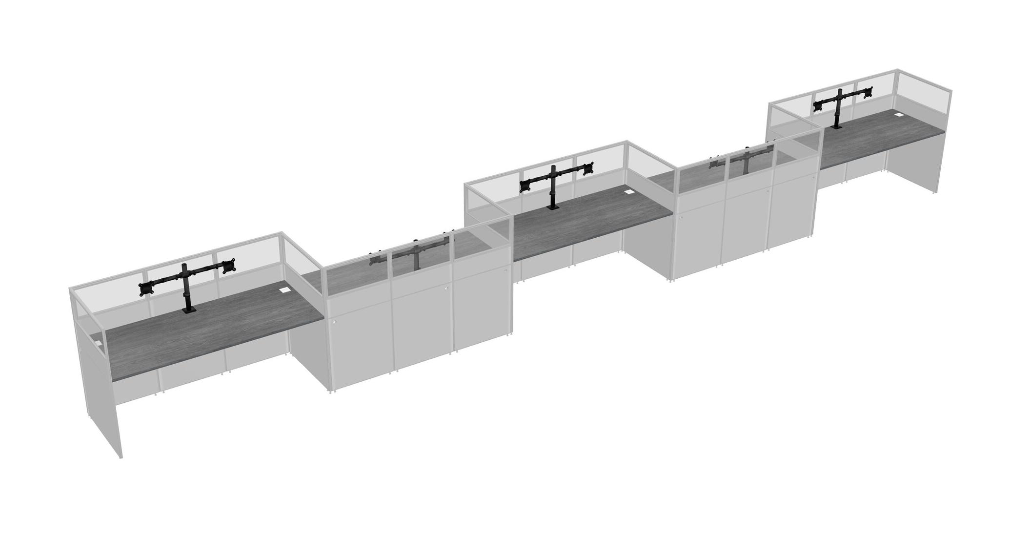 Grey Rectangular Cubicle Workstations For 5 - Zigzag Formation