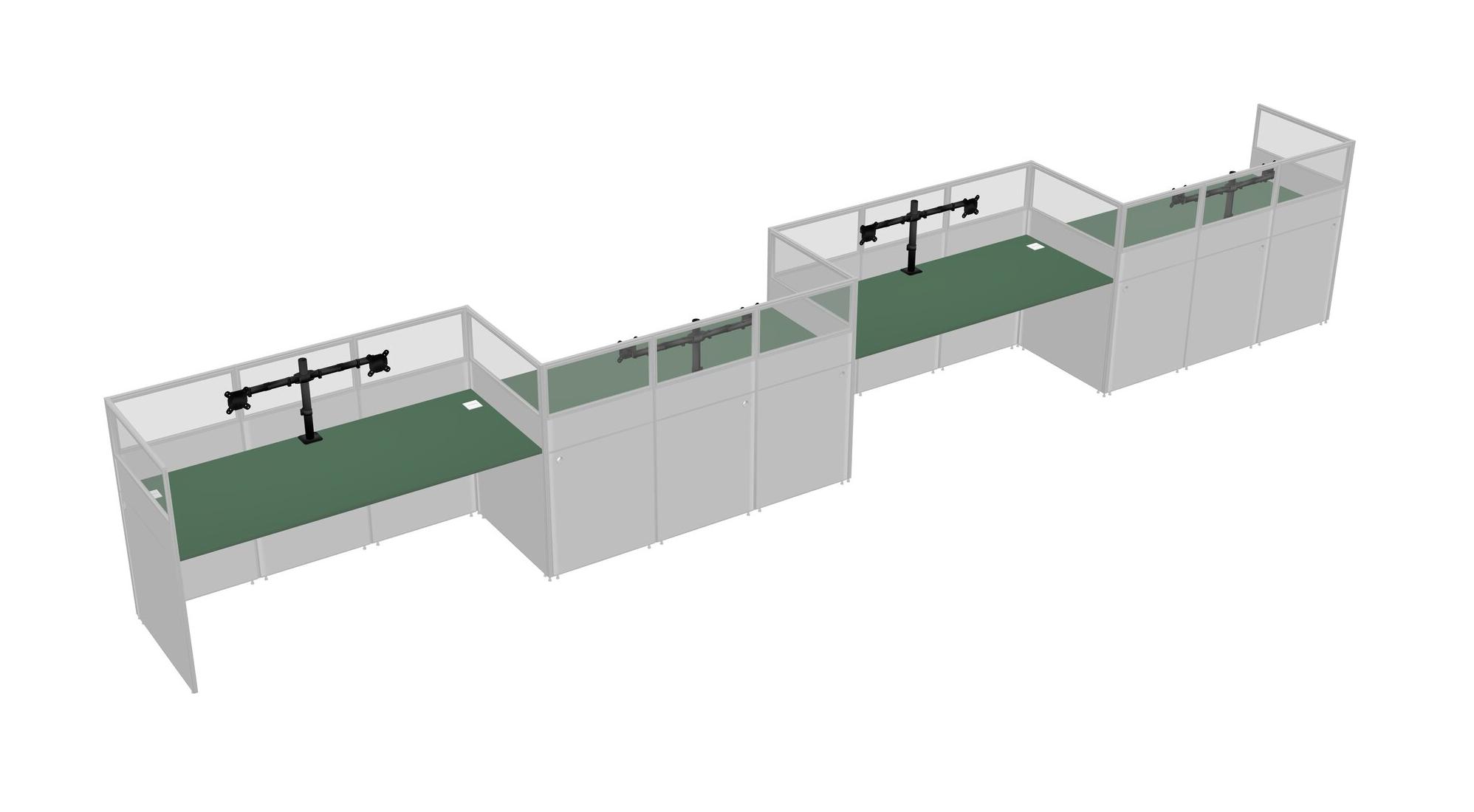 Green Rectangular Cubicle Workstations For 4 - Zigzag Formation