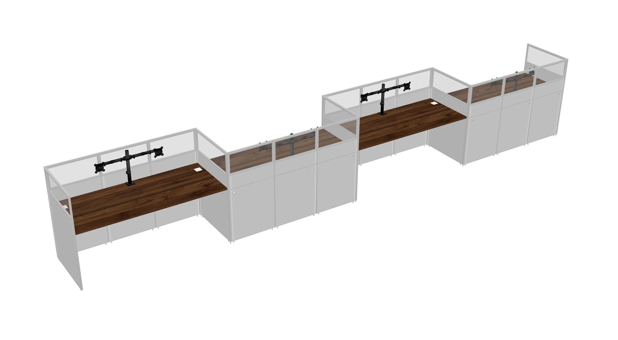 Columbia Walnut Rectangular Cubicle Workstations For 4 - Zigzag Formation