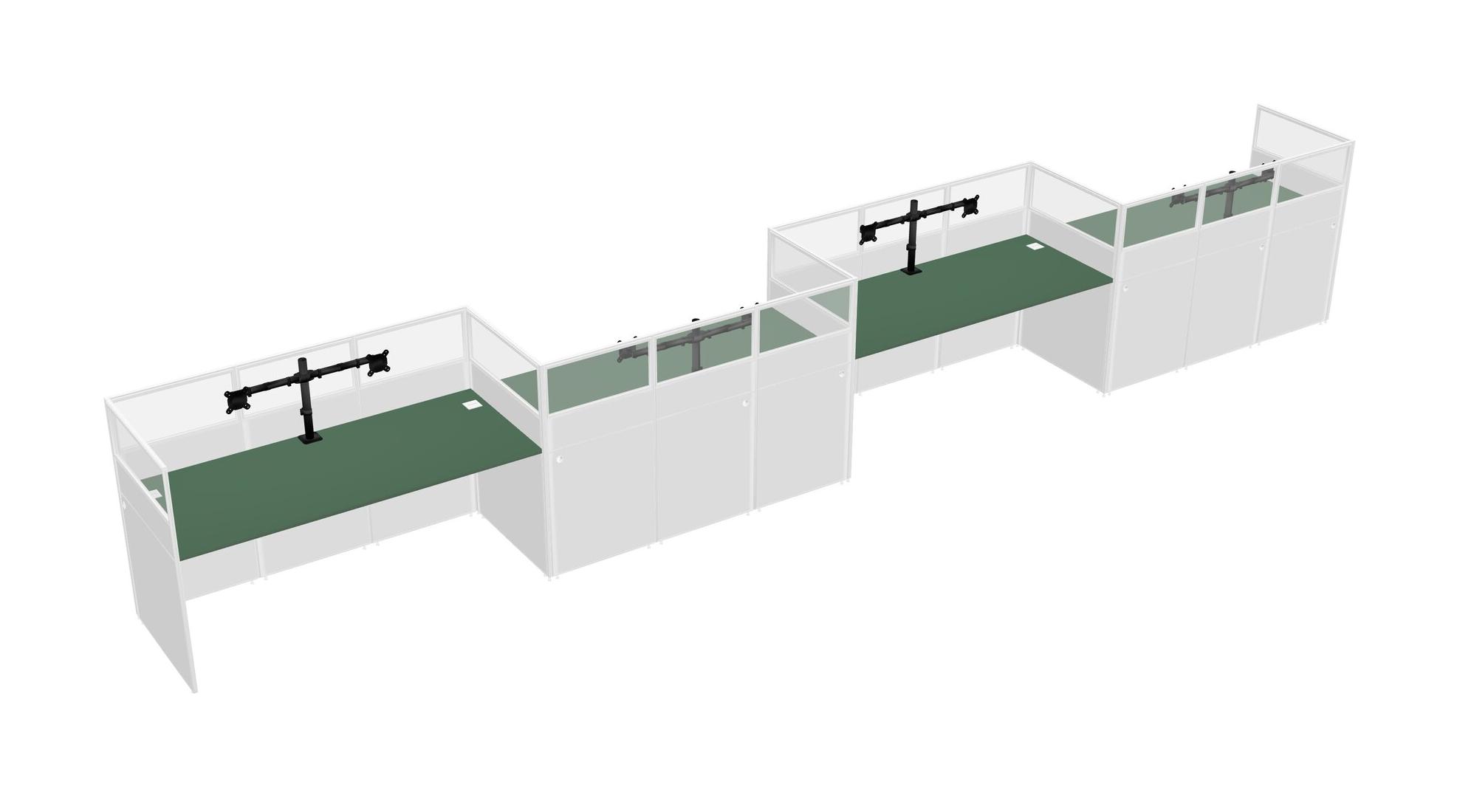 Green Rectangular Cubicle Workstations For 4 - Zigzag Formation