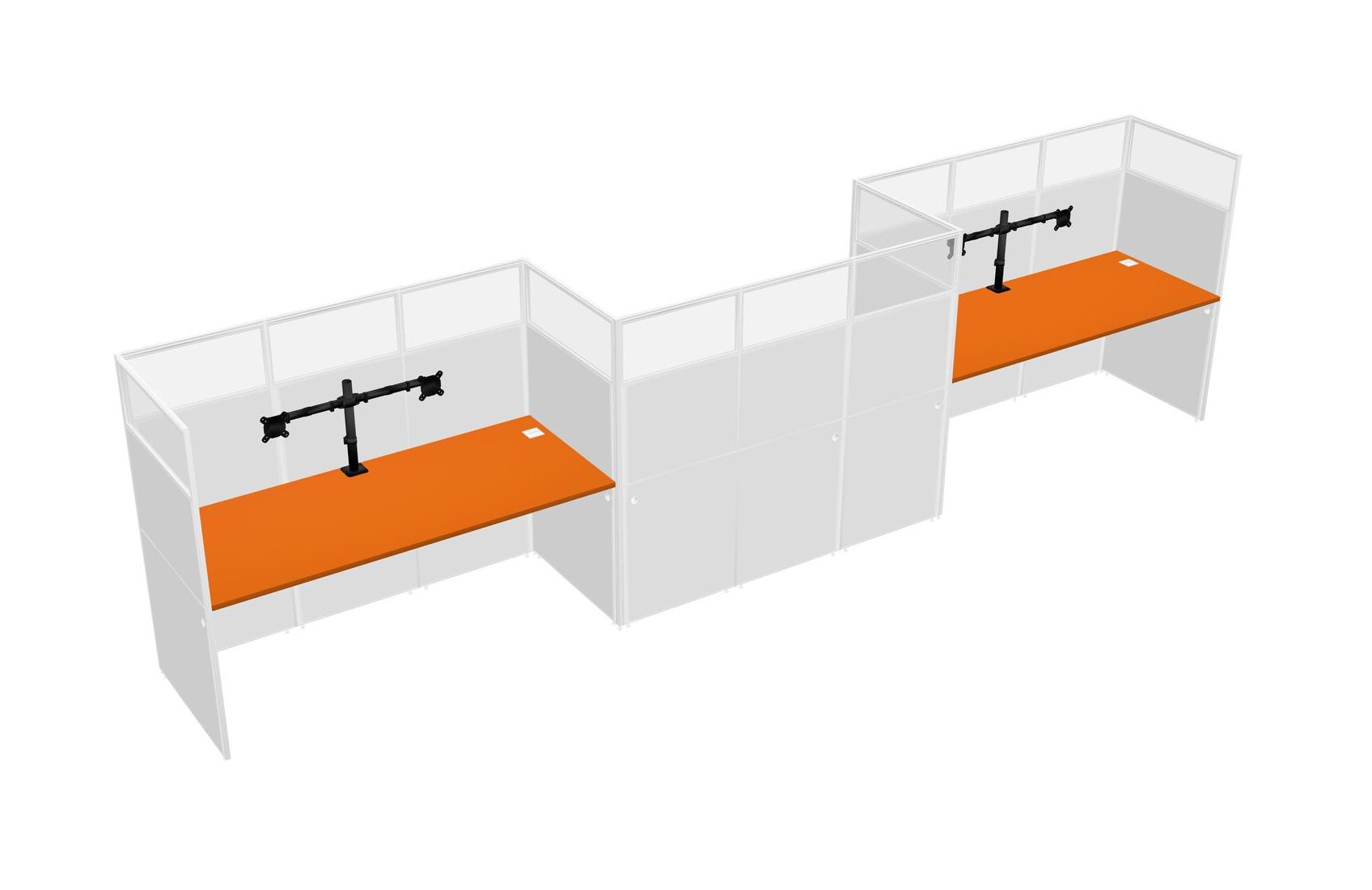Orange Rectangular Cubicle Workstations For 3 - Zigzag Formation