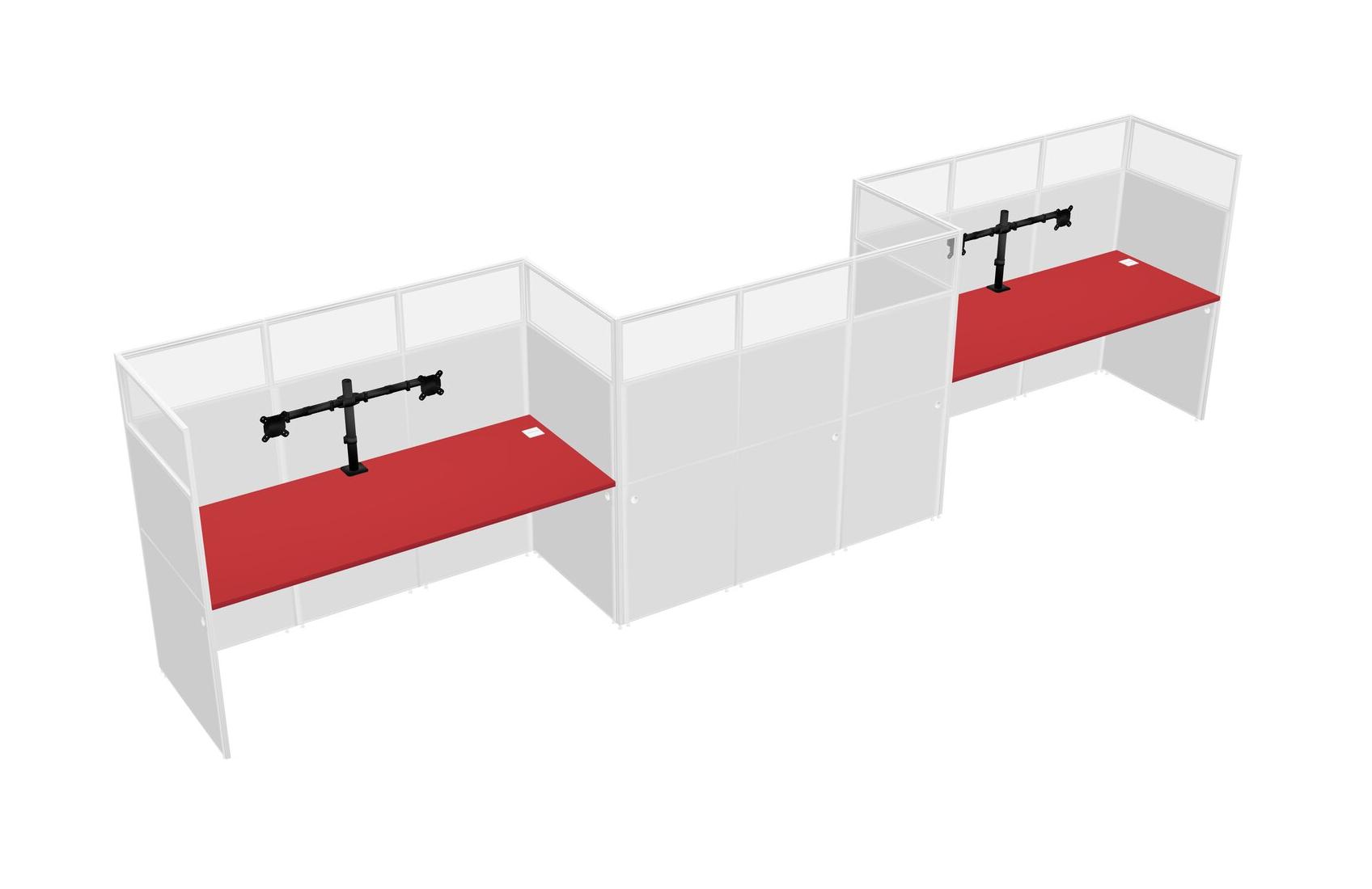 Prism Red Rectangular Cubicle Workstations For 3 - Zigzag Formation