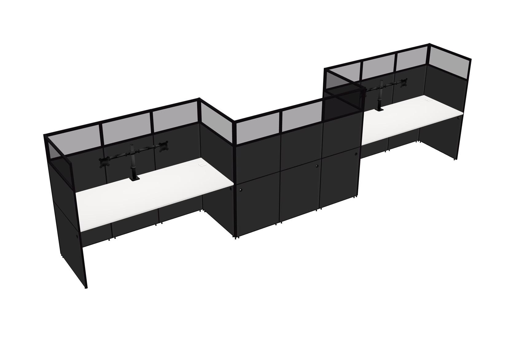 White Rectangular Cubicle Workstations For 3 - Zigzag Formation
