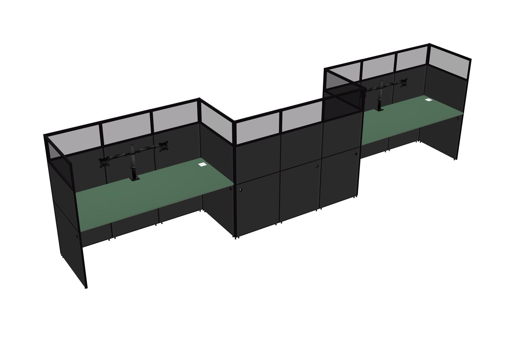 Green Rectangular Cubicle Workstations For 3 - Zigzag Formation