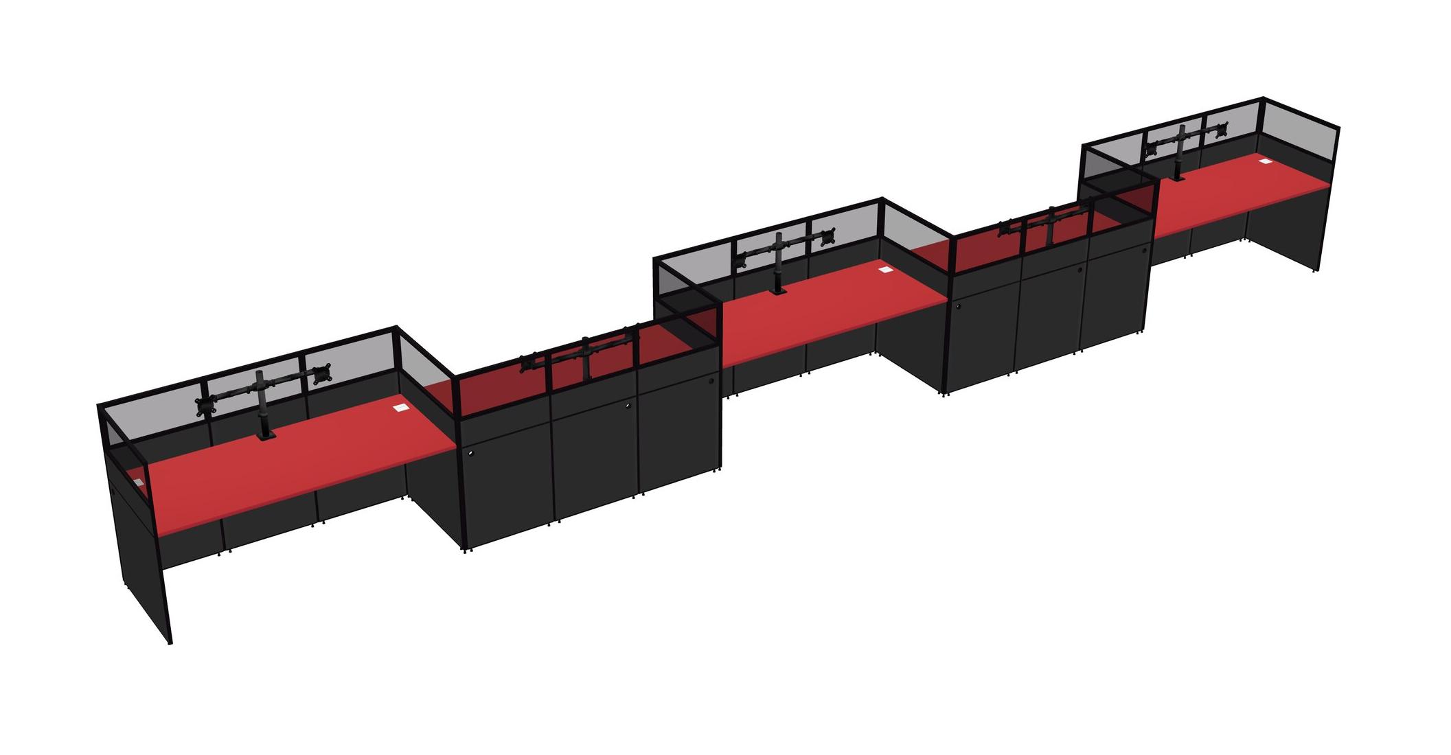 Prism Red Rectangular Cubicle Workstations For 5 - Zigzag Formation