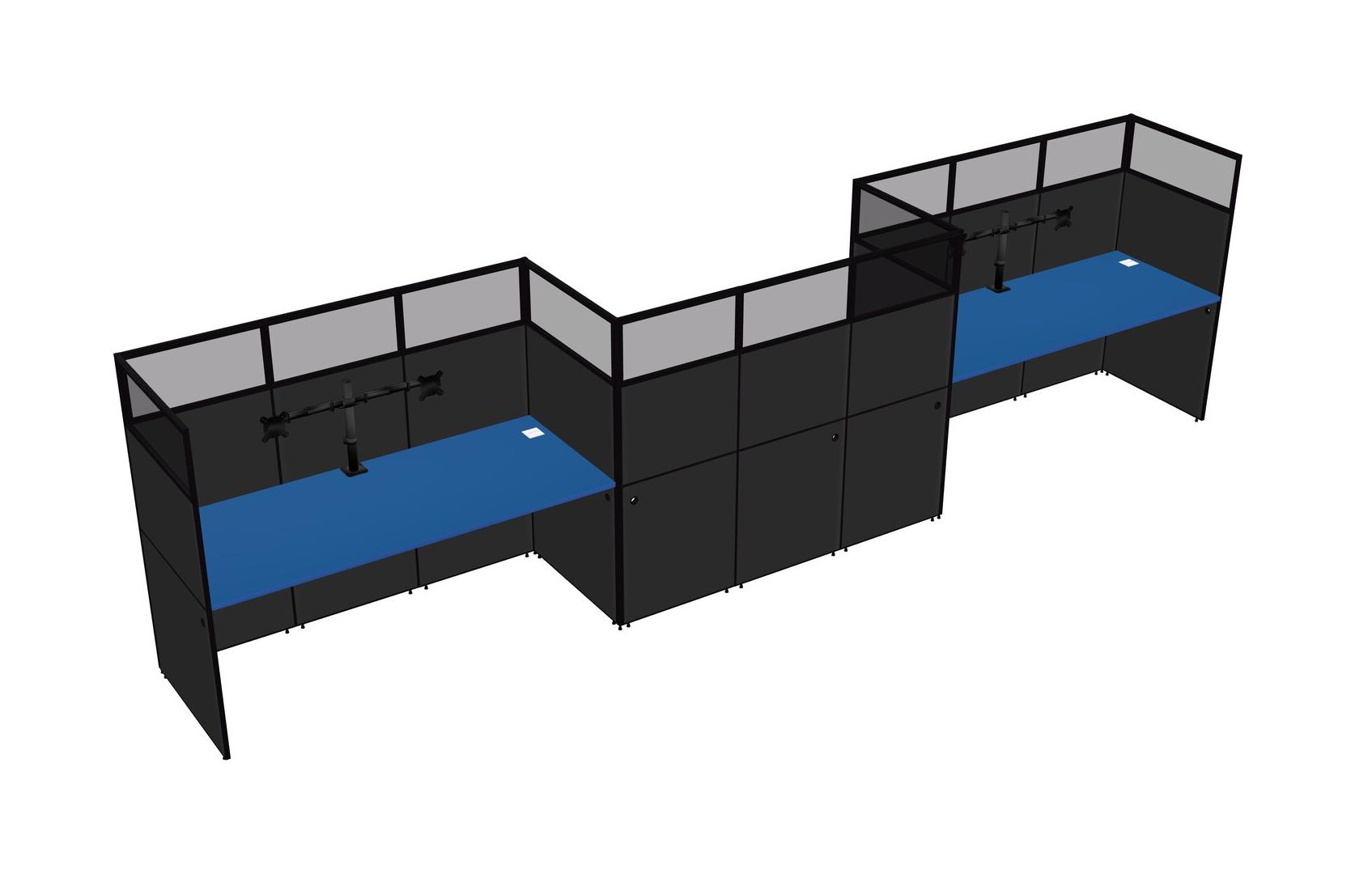 Prism Blue Rectangular Cubicle Workstations For 3 - Zigzag Formation