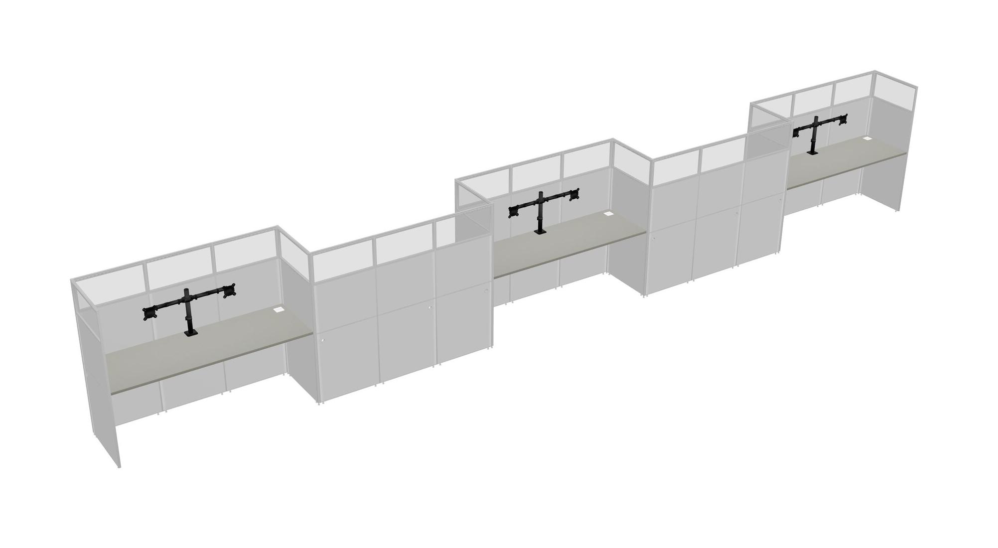 Grey Shadows Rectangular Cubicle Workstations For 5 - Zigzag Formation