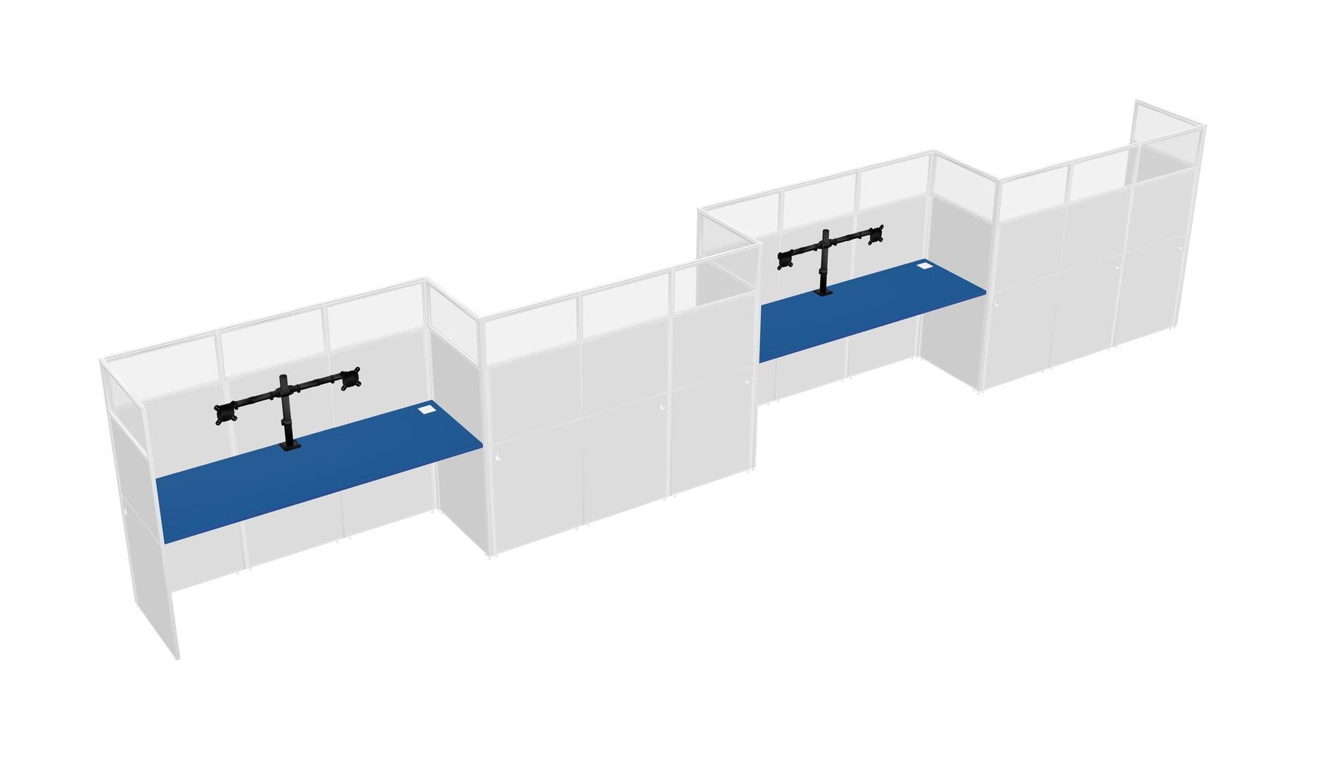 Prism Blue Rectangular Cubicle Workstations For 4 - Zigzag Formation