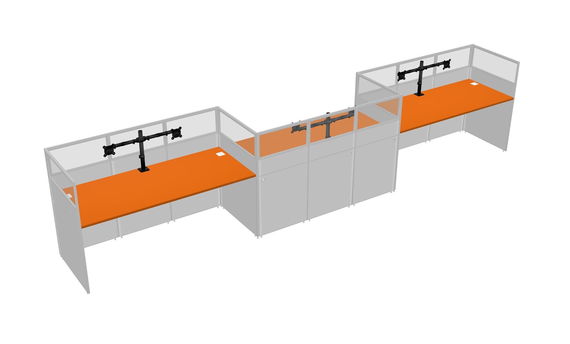 Orange Rectangular Cubicle Workstations For 3 - Zigzag Formation