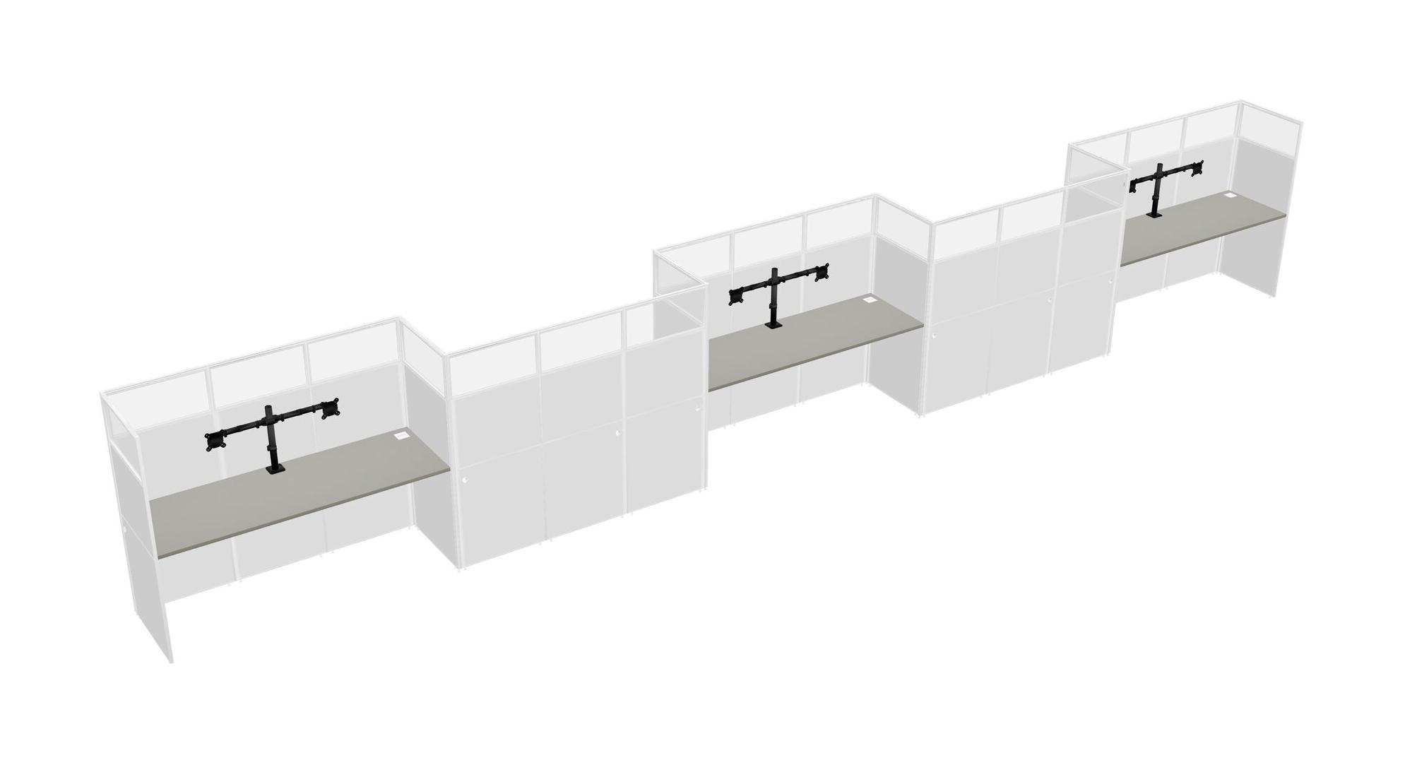 Grey Shadows Rectangular Cubicle Workstations For 5 - Zigzag Formation