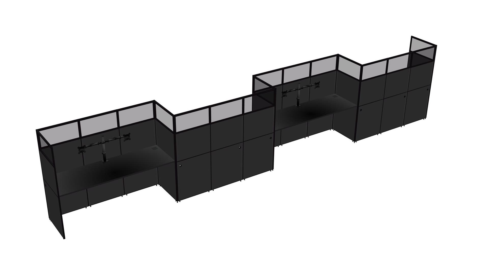 Black Rectangular Cubicle Workstations For 4 - Zigzag Formation