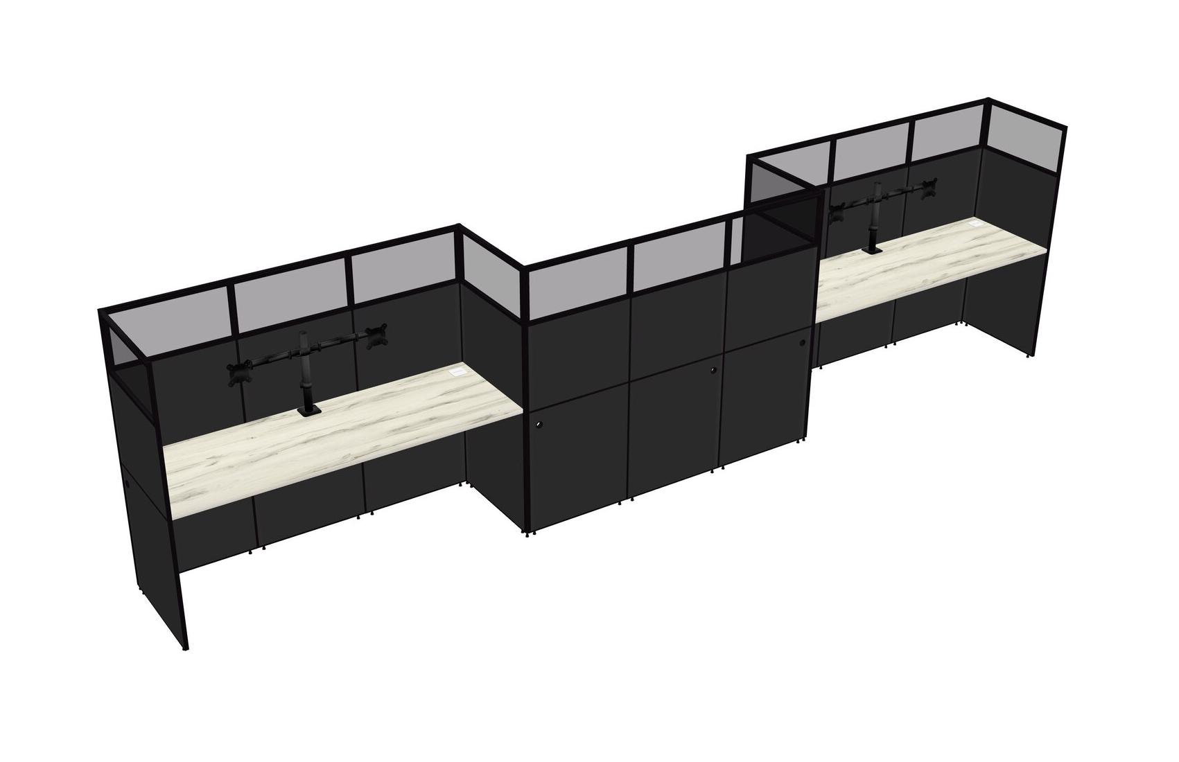 Heinne Holz Rectangular Cubicle Workstations For 3 - Zigzag Formation