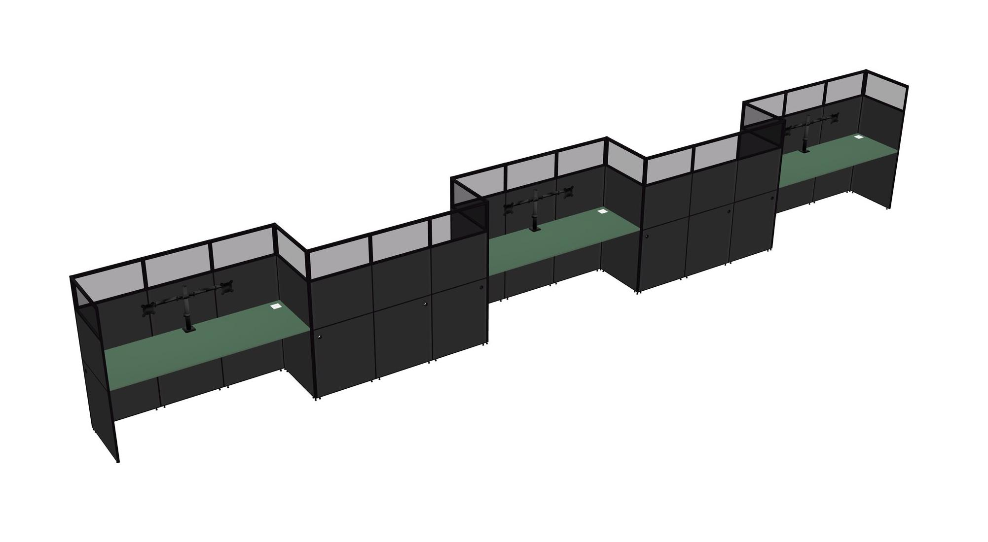 Green Rectangular Cubicle Workstations For 5 - Zigzag Formation